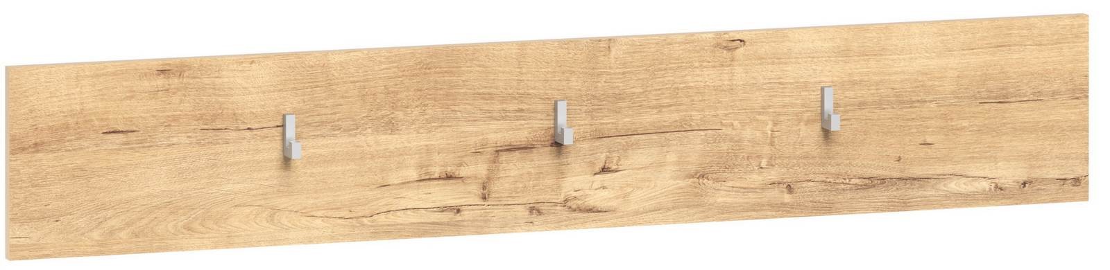 Панель из ламинированной ДСП с вмонтированными в нее тремя крючками для одежды.