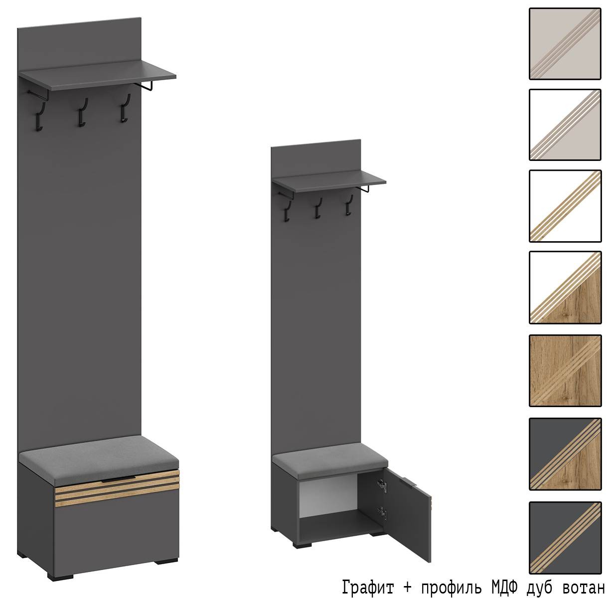 Вариант 2 Корпус ЛДСП Графит + фасад ЛДСП Графит/Декор фасада: профиль МДФ Дуб Вотан