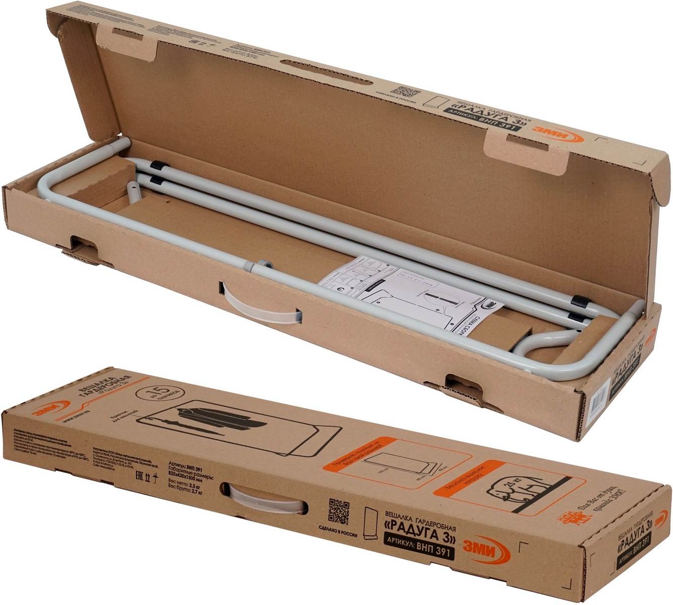 Открытая конструкция со штангой для плечиков с одеждой.
