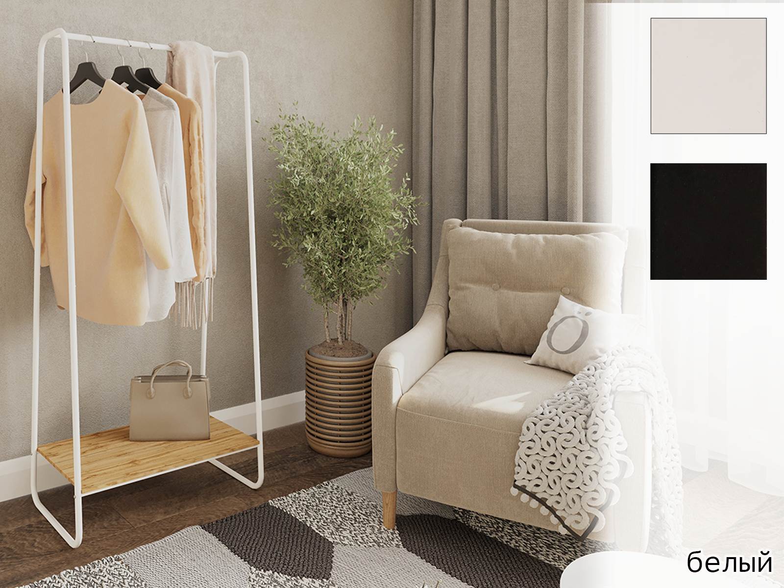 Вешалка гардеробная Скандинавия 21- функциональная система хранения для спальни или прихожей.