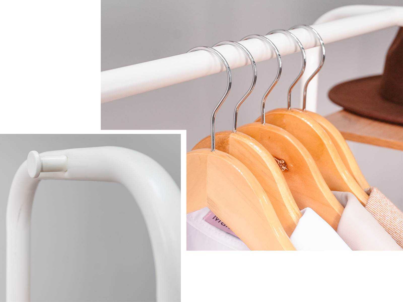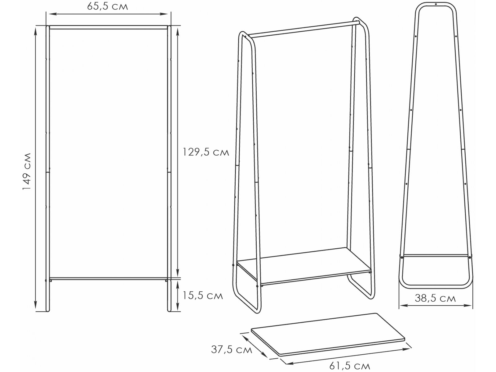 Открытая конструкция со штангой для плечиков с одеждой и полкой для хранения из ЛДСП.