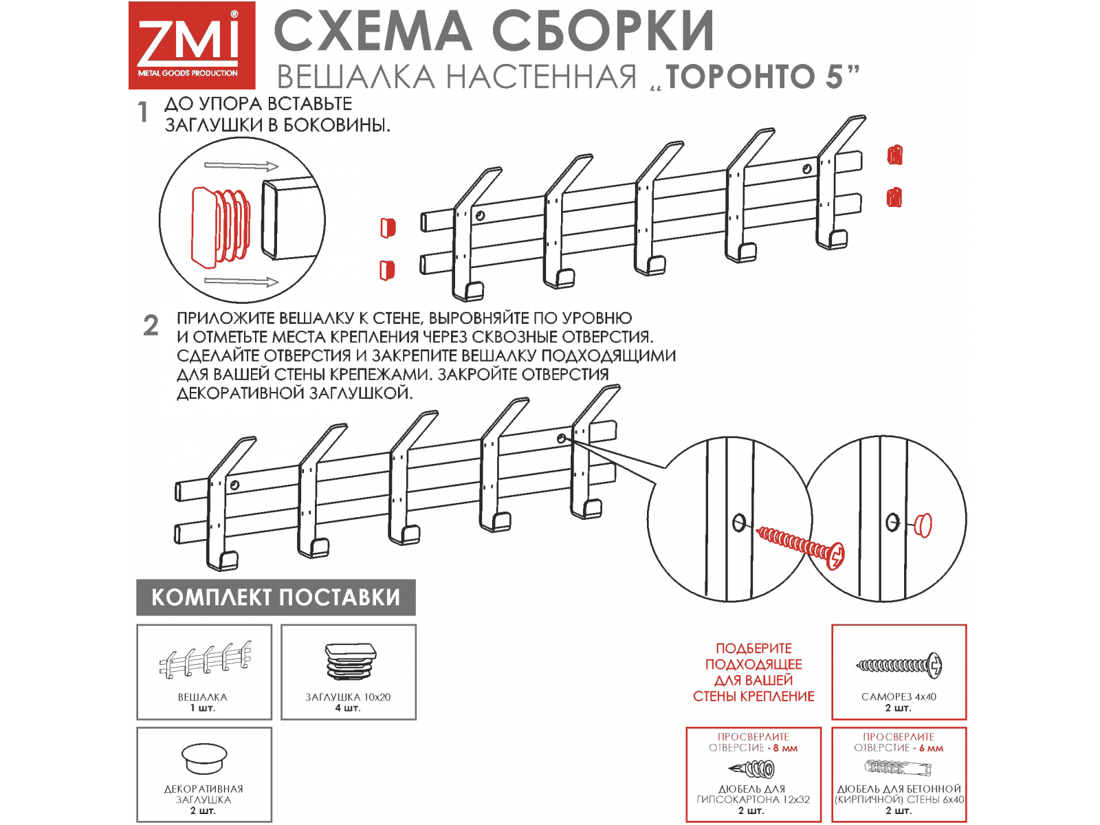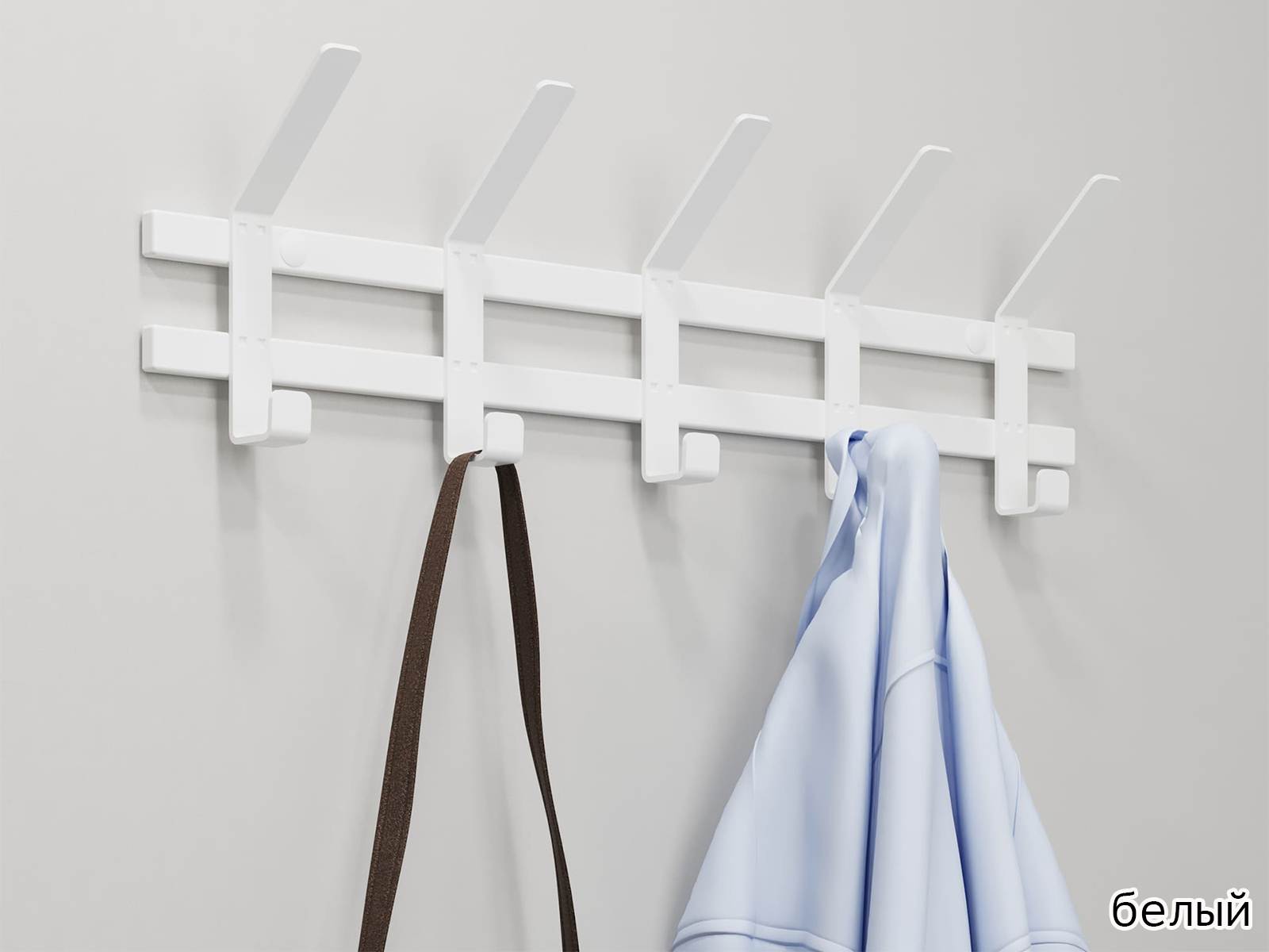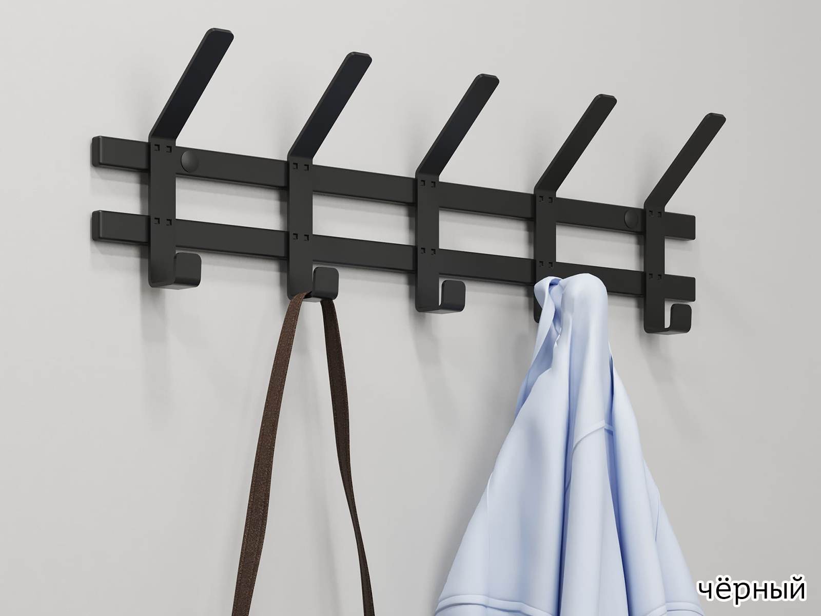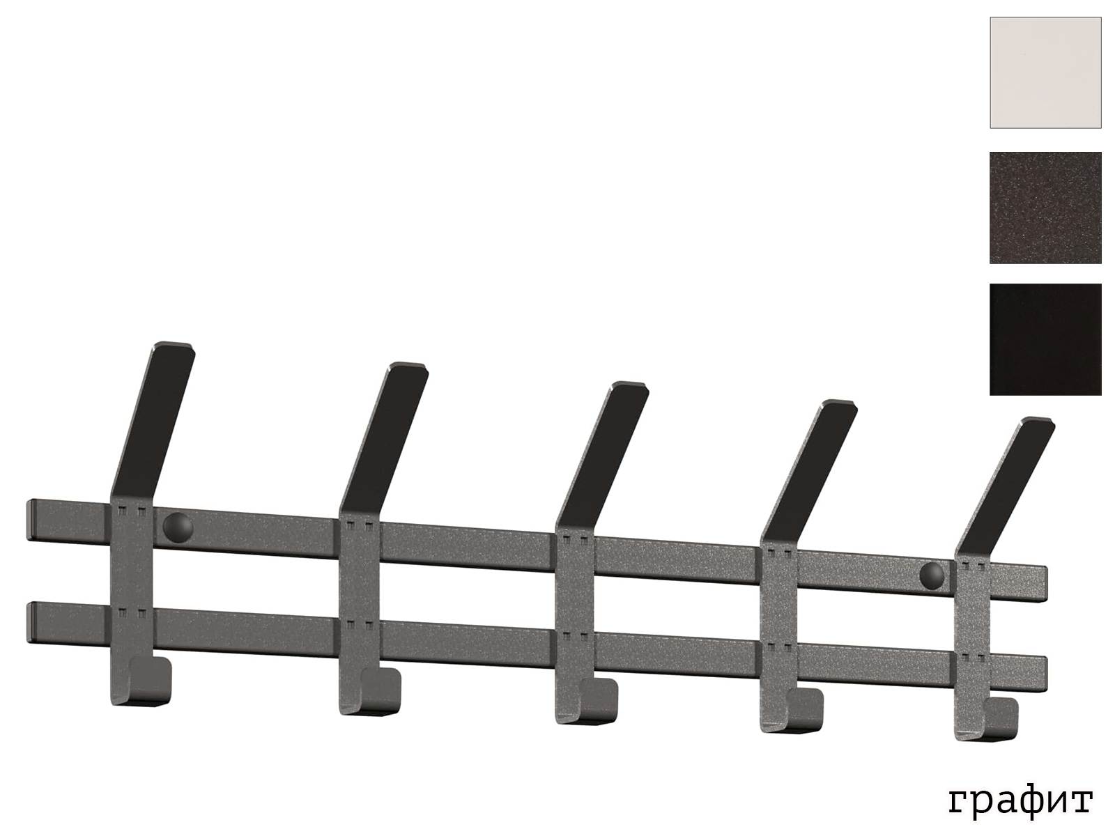 Конструкция с пятью крючками для одежды и пятью крючками для головных уборов.