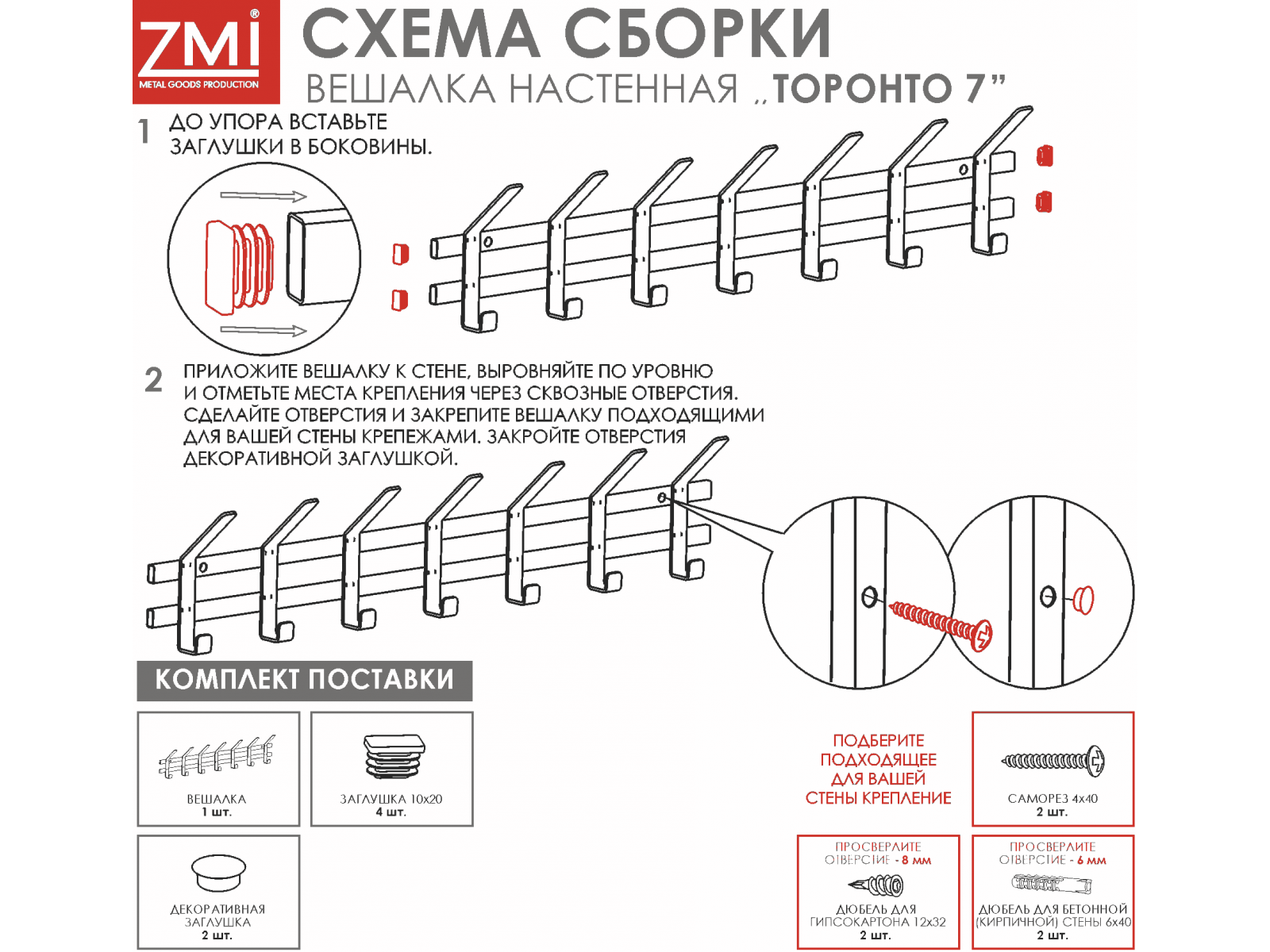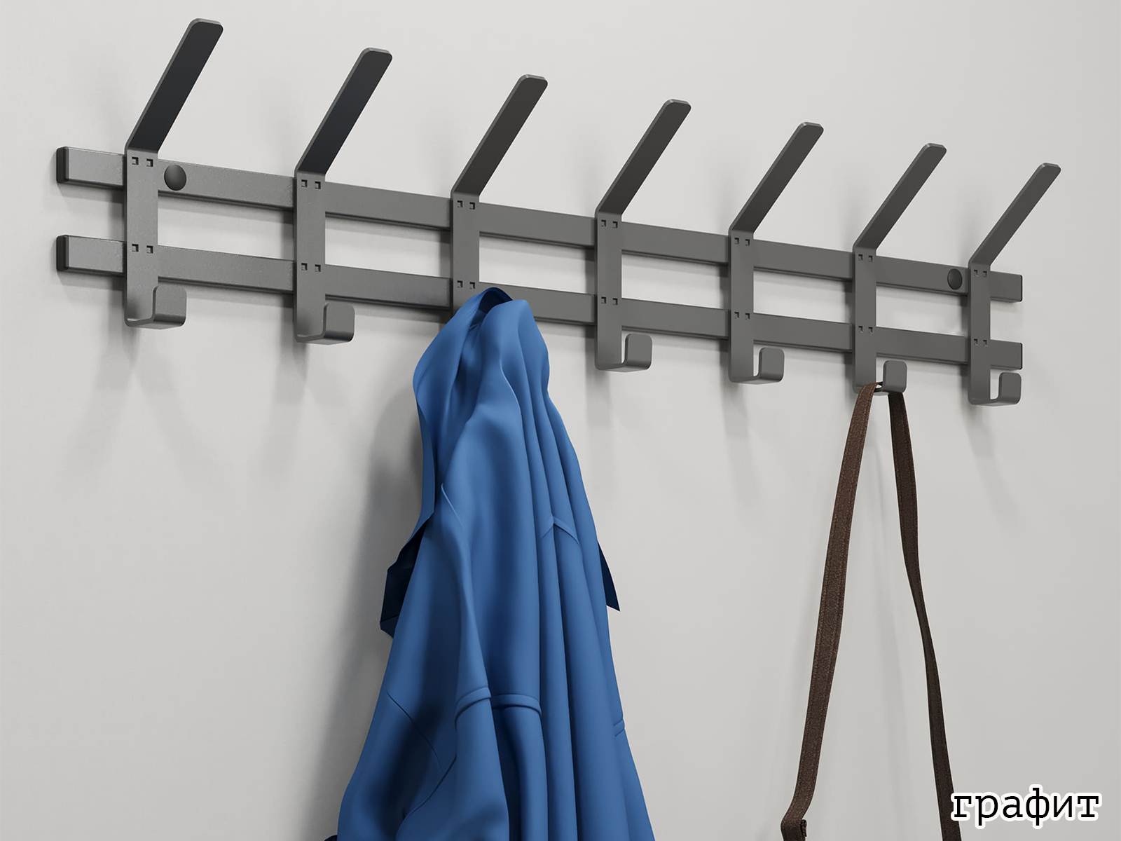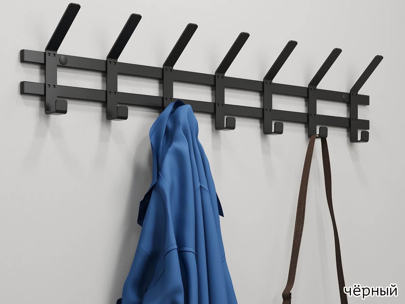 Конструкция с семью крючками для одежды, и семью крючками для головных уборов.