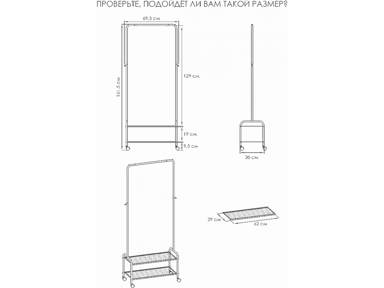 Каркас из металла с колёсными опорами для легкого перемещения.