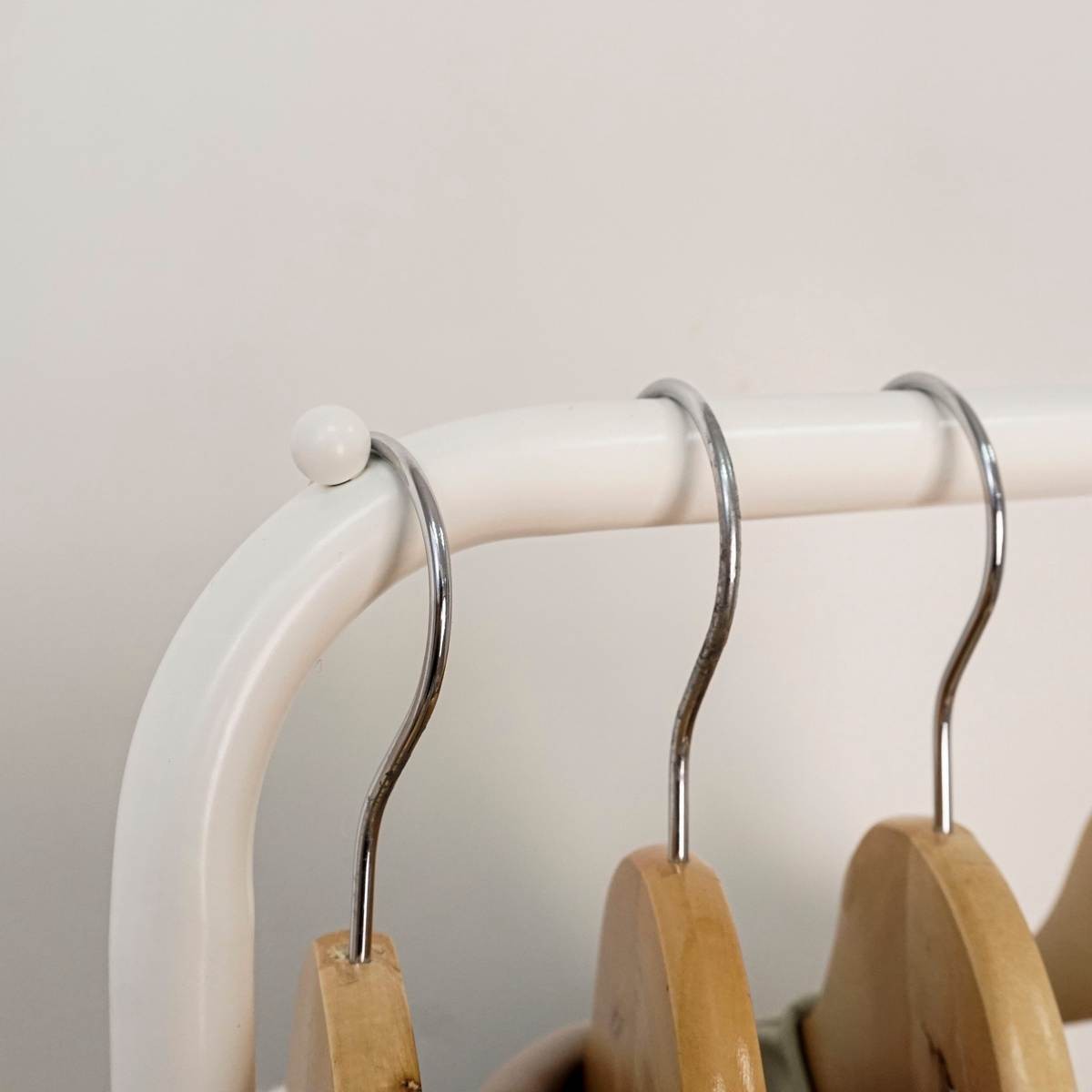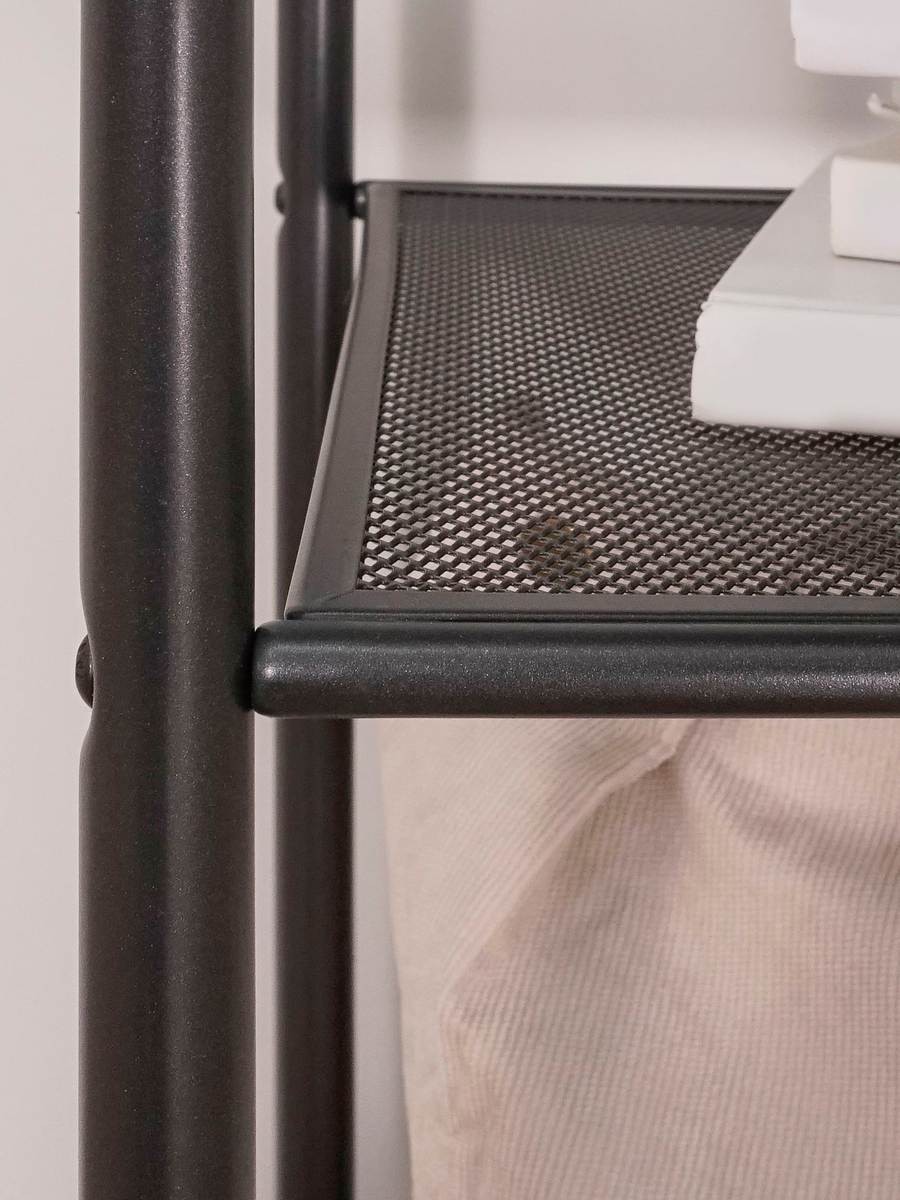 Открытая конструкция со штангой для плечиков с одеждой и двумя полками для хранения.