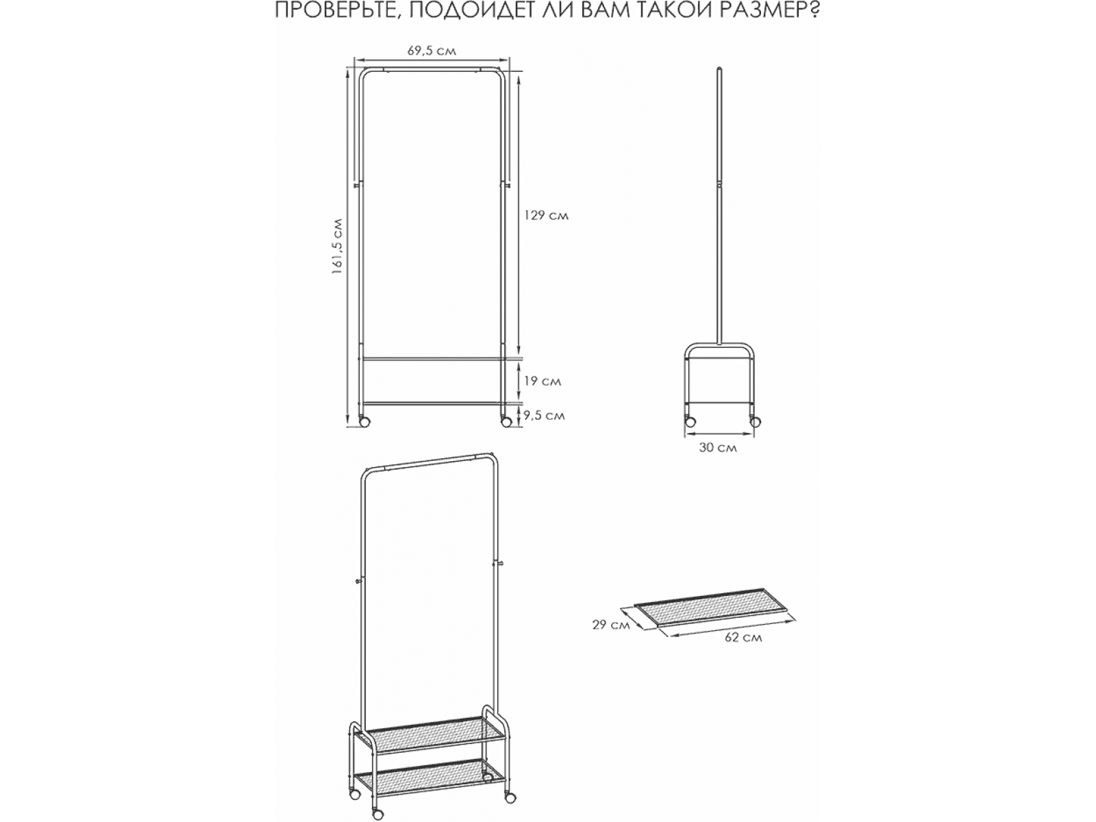Каркас из металла с колёсными опорами для легкого перемещения.
