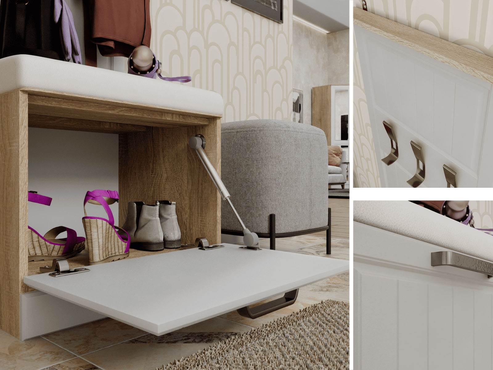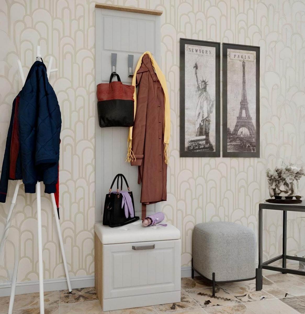 Тумба для прихожей из МДФ с Вешалкой Венеция-1 с размерами 540х2185х440мм - это стильный и функциональный элемент мебели, который идеально подойдёт для прихожей. Она выполнена в современном дизайне, что придаёт ей элегантный и изысканный вид.