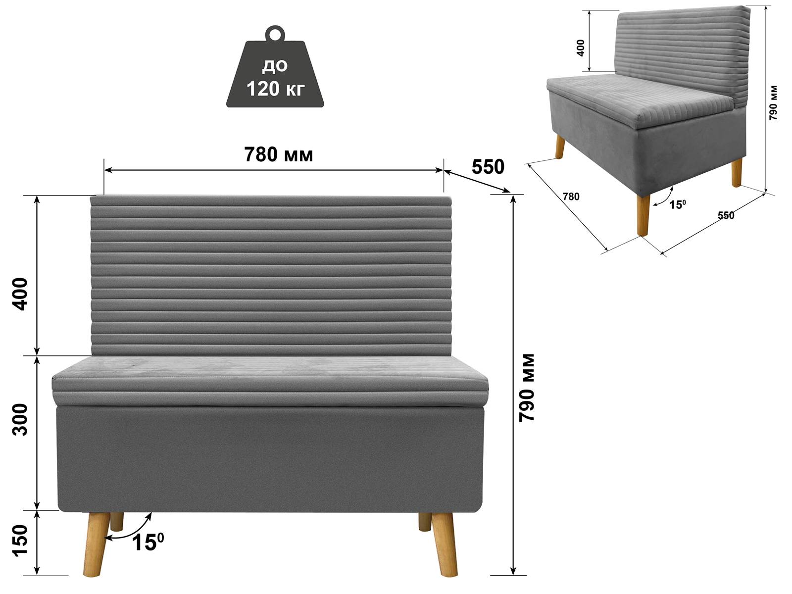 Сиденье мягкое прямоугольное, под ним ящик для хранения.