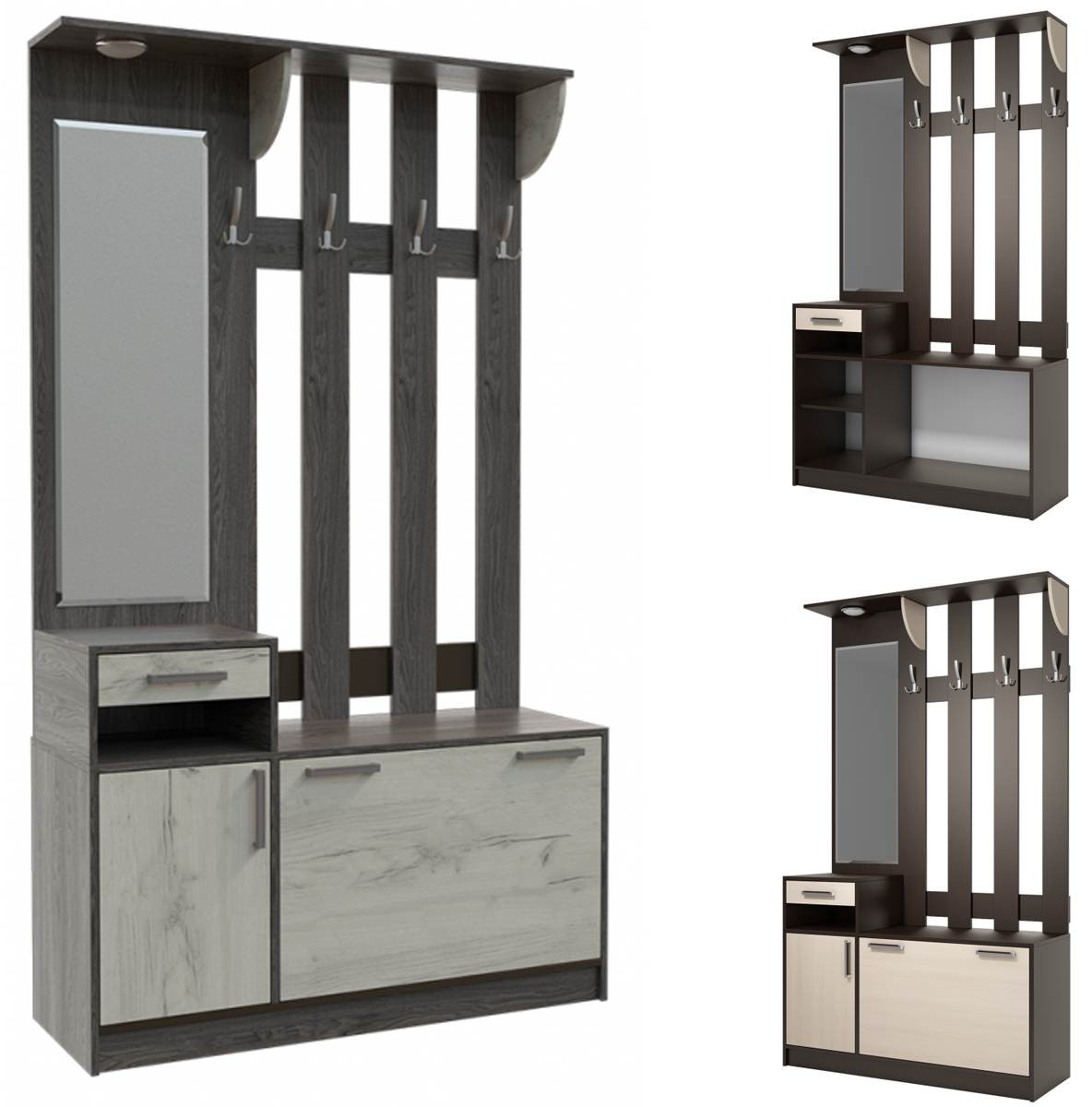 Диана-4 секция №14 Прихожая - универсальное изделие для прихожей комнаты. Модель имеет комбинированную конструкцию. Вверху открытая вешалка для одежды и полка, а внизу секция для обуви с откидной дверцей. Зеркало и тумба с другой стороны.