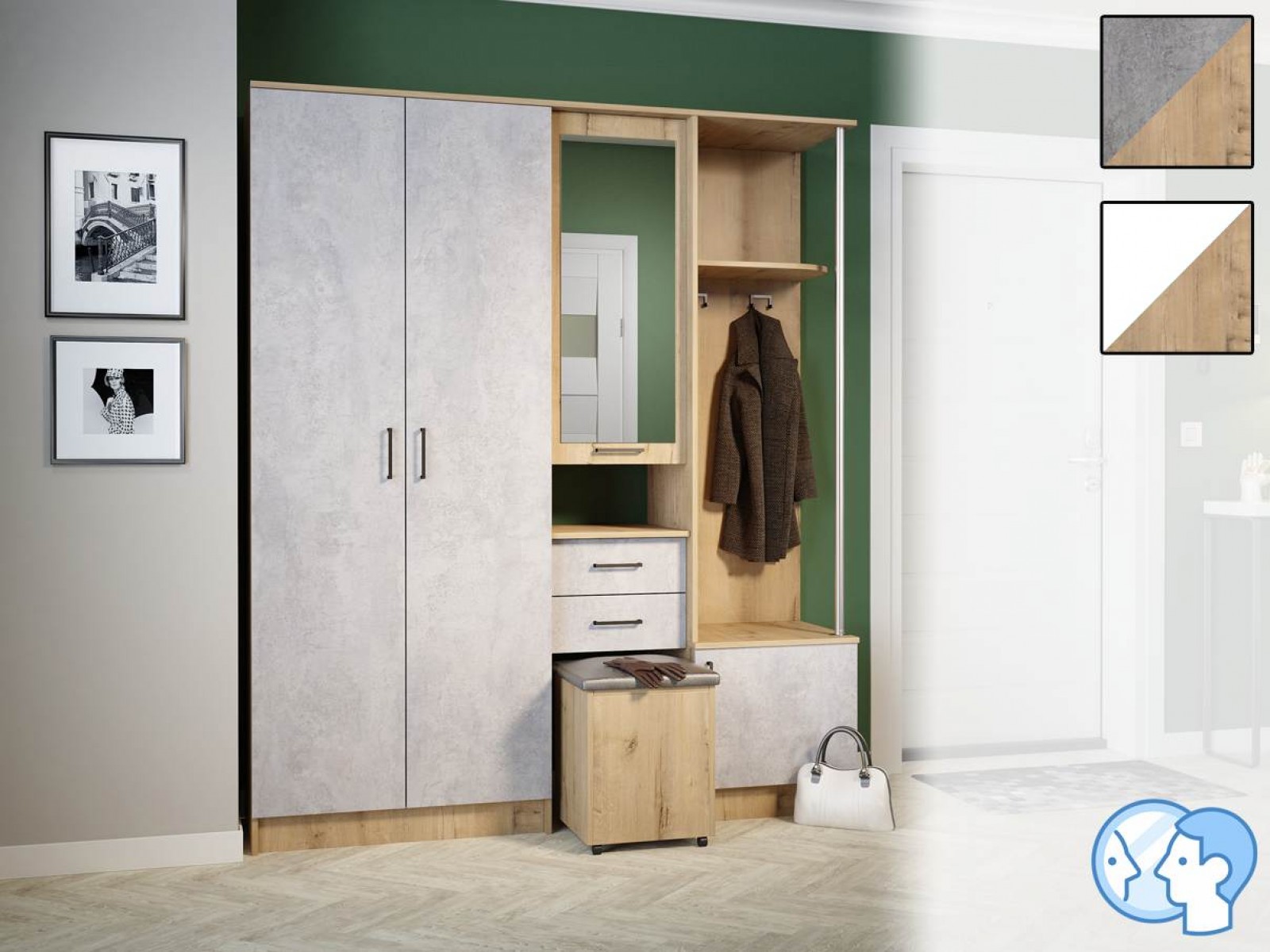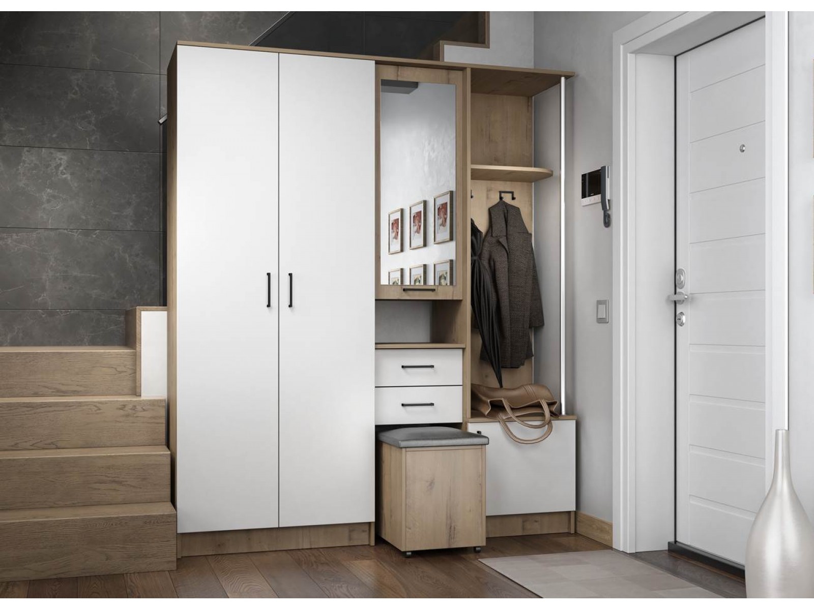 Мягкий пуфик в комплекте станет идеальным местом для снятия обуви и отдыха после долгого дня. Пуфик открывается и имеет место для хранения