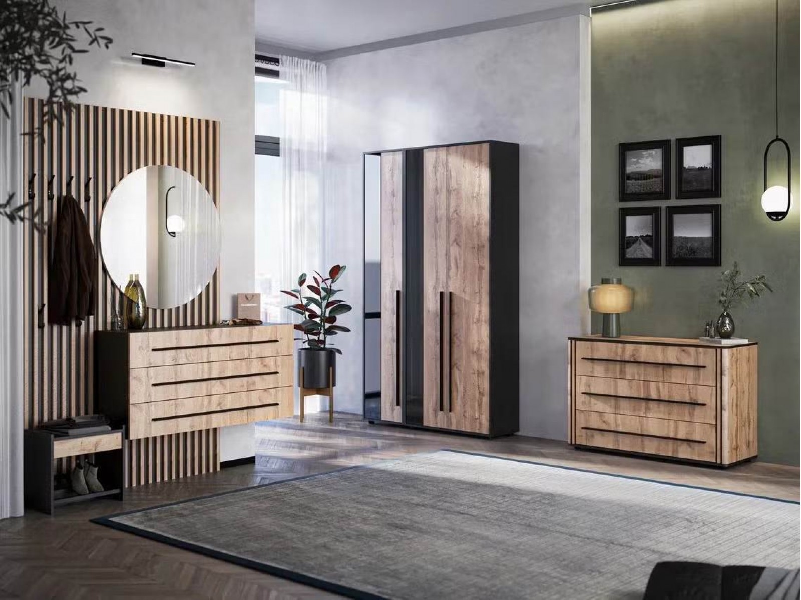 Совершенный дизайн, стильное решение сочетания цвета дерева и графита. Реечные декоративные вставки, направляющие полного выдвижения.