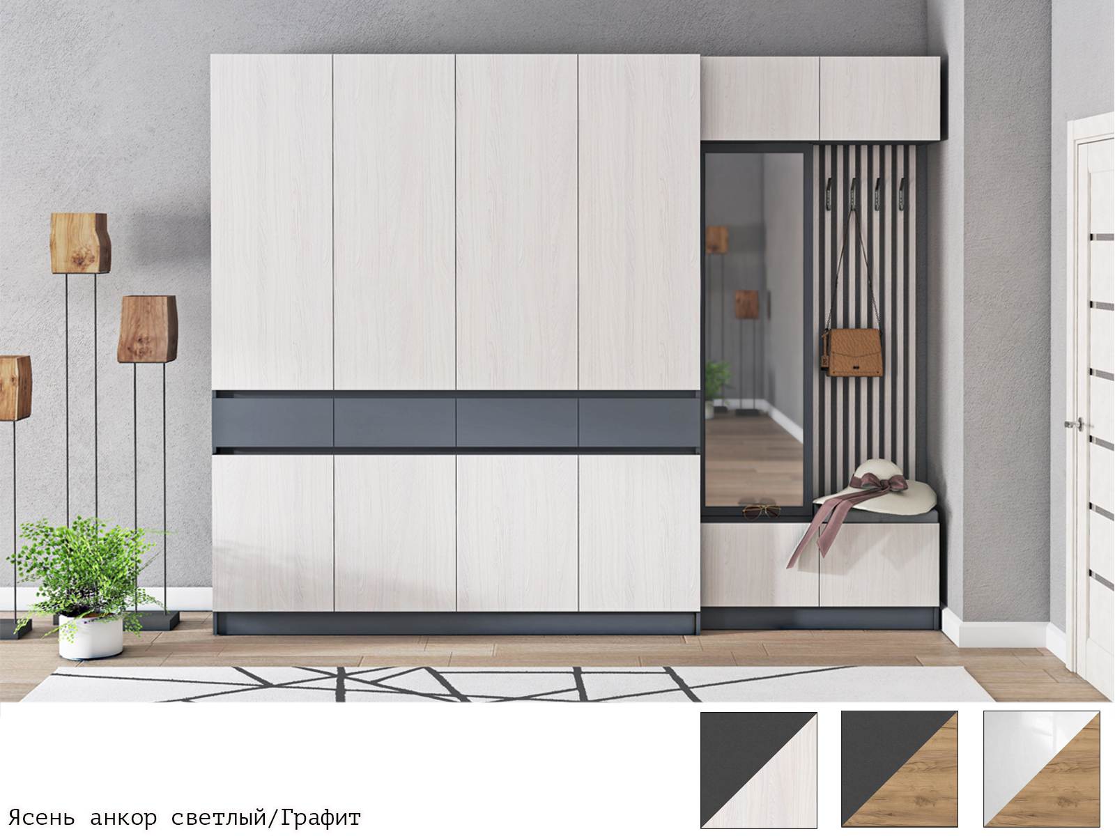 - Вешалка (верх/низ - ниши, ниша с полками и зеркалом, четыре крючка для одежды), 1000х2400х424 мм.