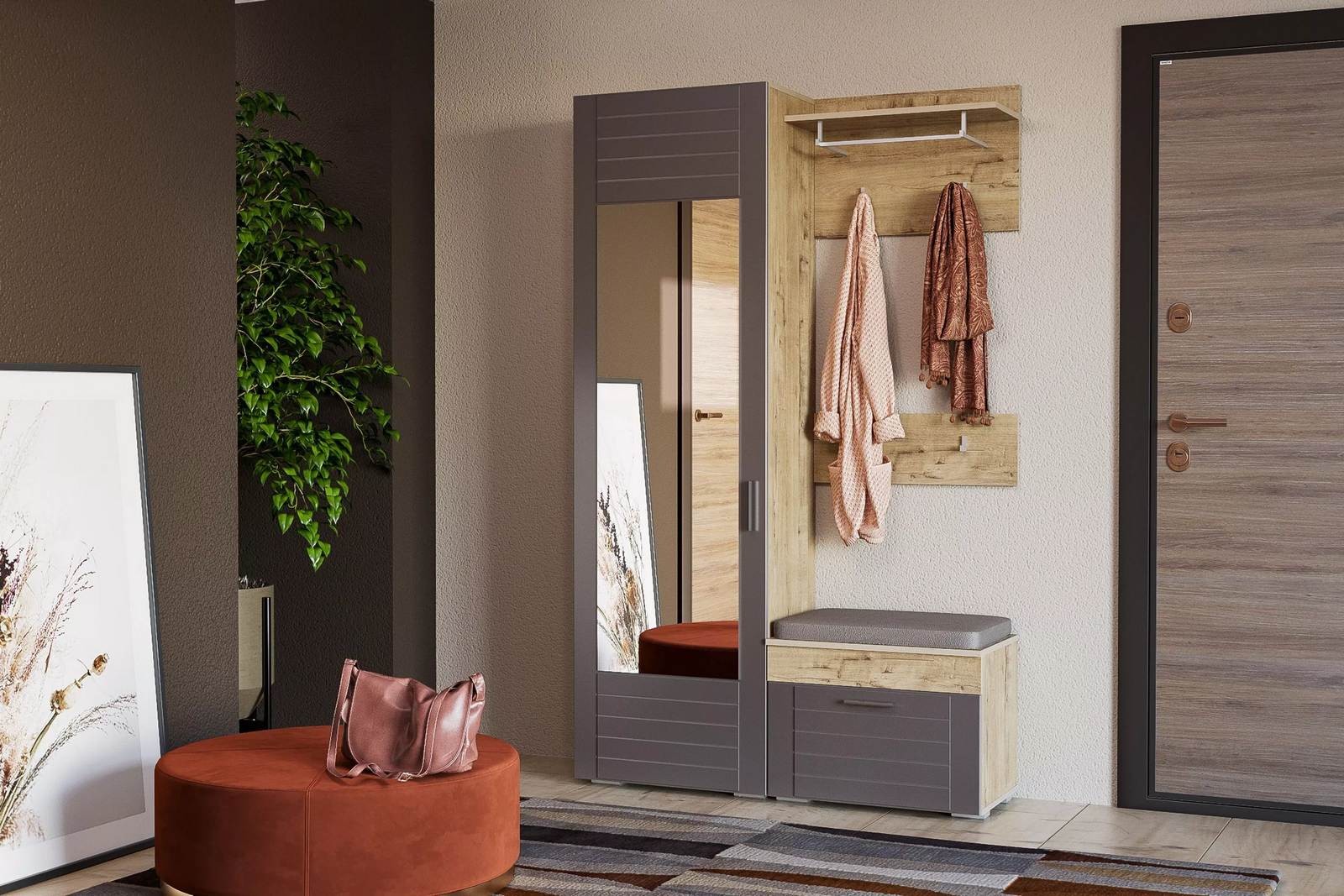 Прихожая Livorno 3 дуб бунратти + софт графит - ультра современный модульный набор мебели для прихожей комнаты.