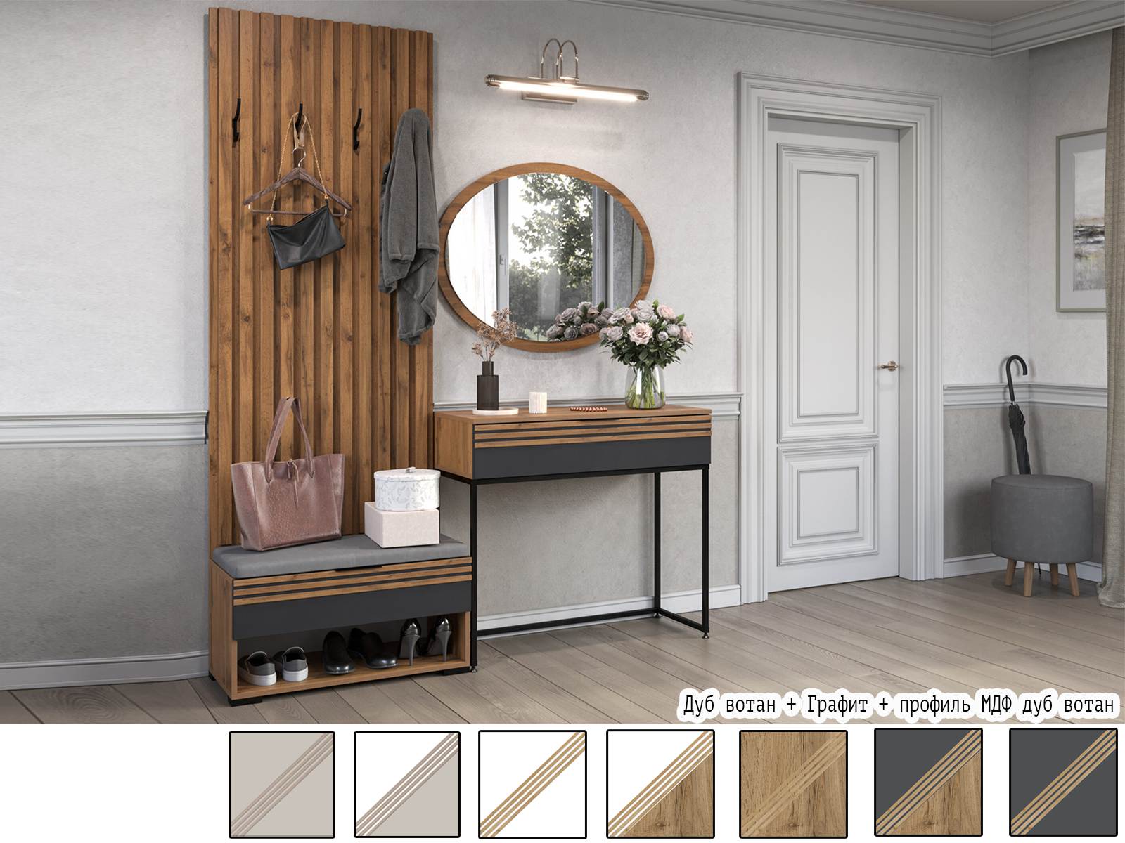 Вариант 4 Корпус ЛДСП Дуб Вотан + фасад ЛДСП Графит/Декор фасада: профиль МДФ Дуб Вотан