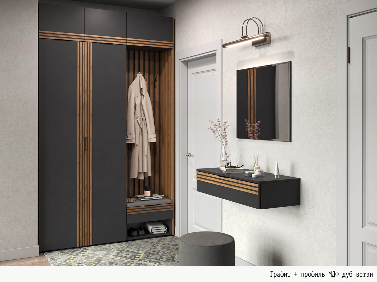 Вариант 2 Корпус ЛДСП Графит + фасад ЛДСП Графит/Декор фасада: профиль МДФ Дуб Вотан