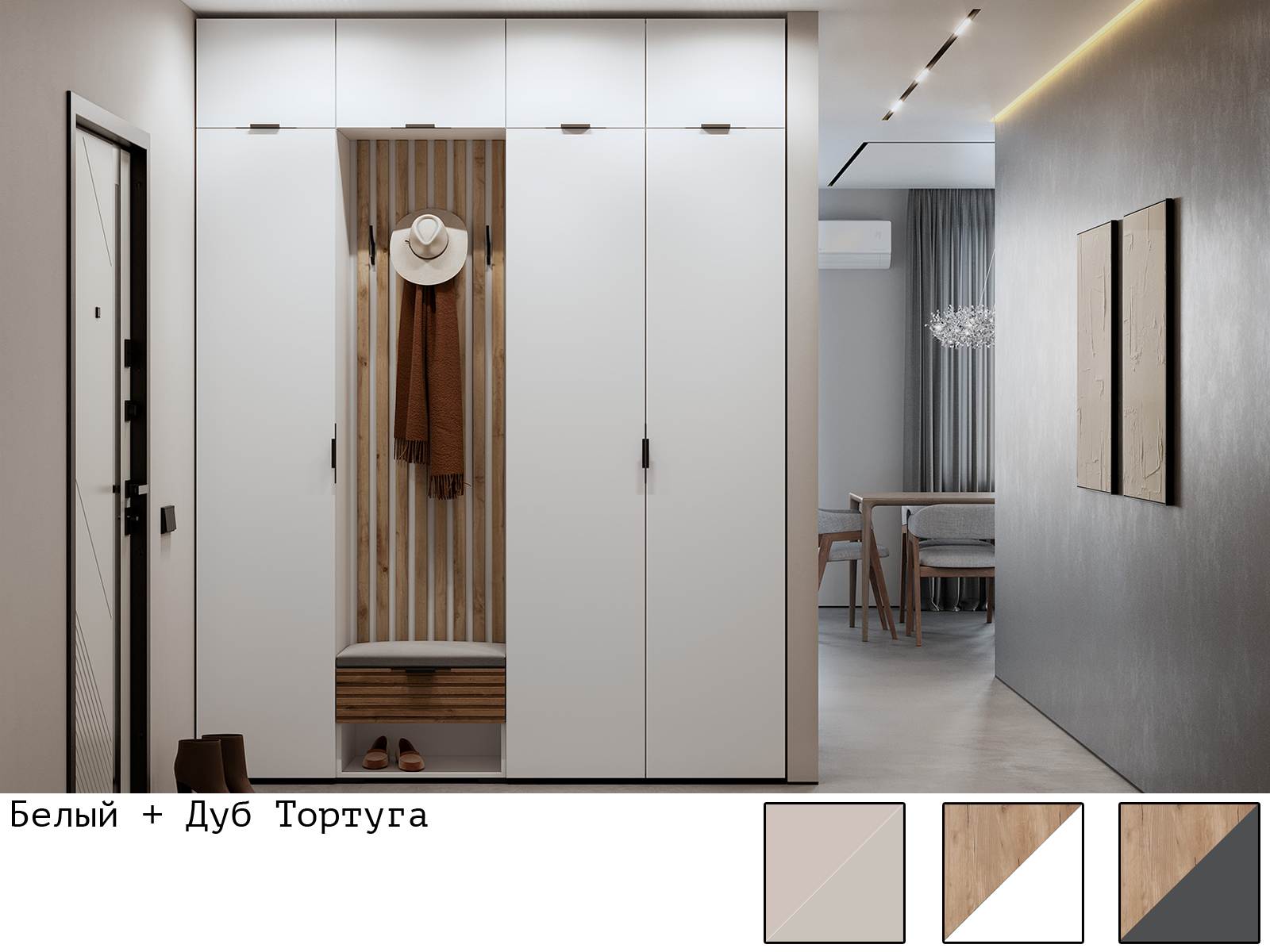 Вариант 1: Корпус ЛДСП Белый + Фасад ЛДСП Белый / МДФ Дуб Тортуга