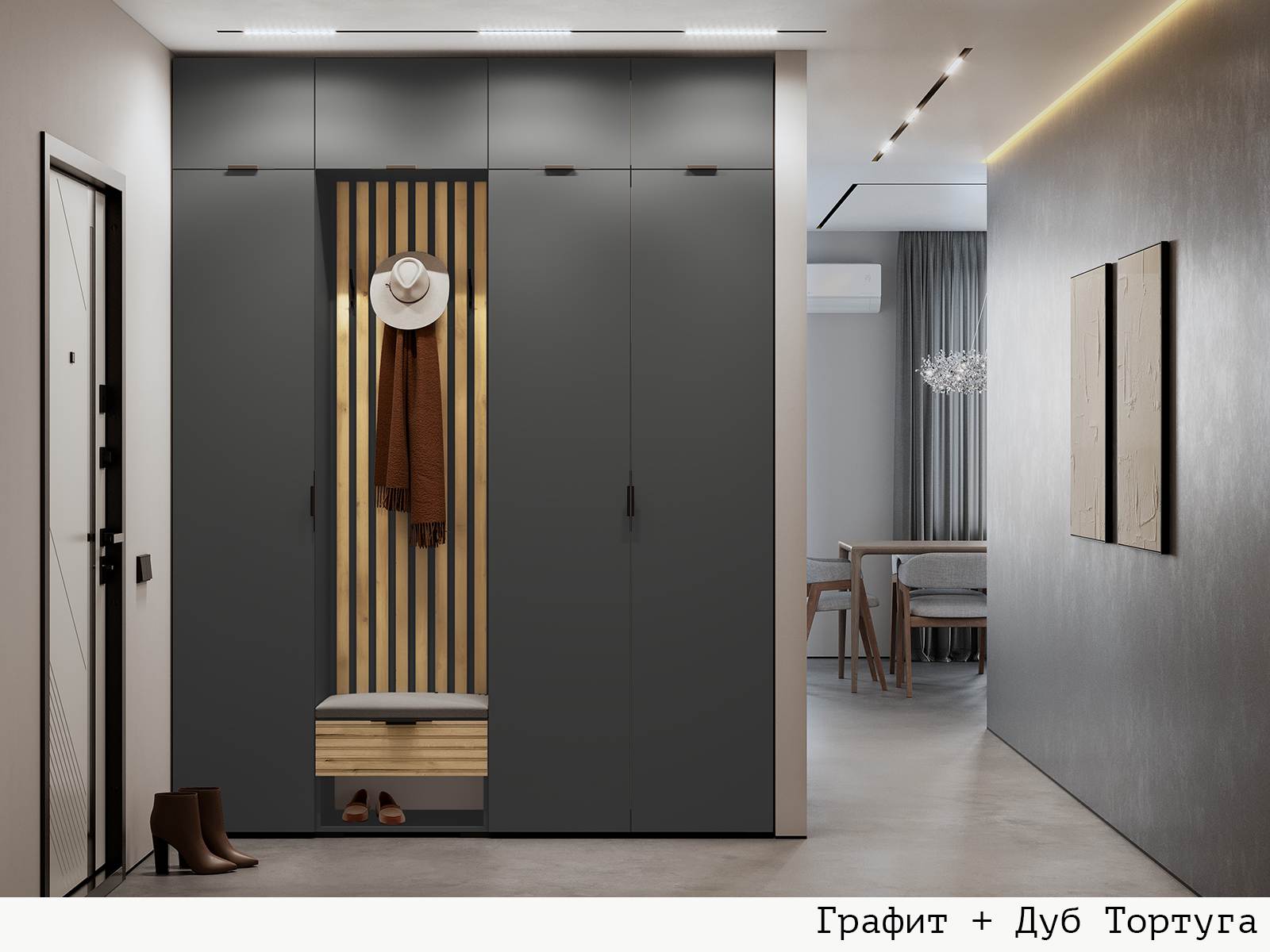 Вариант 2: Корпус ЛДСП Графит + Фасад ЛДСП Графит / МДФ Дуб Тортуга