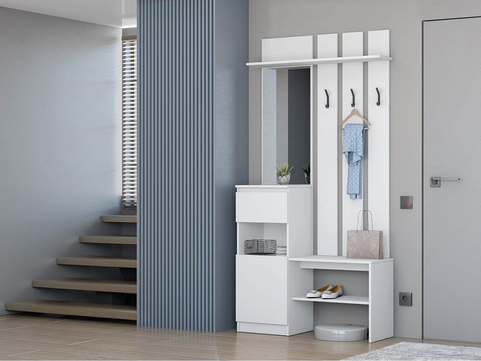 Вешалка - удобный и функциональный предмет мебели, который, благодаря наличию тумбы с выдвижным ящиком и нишами, антресольной полки, открытой обувницы и зеркала, даст возможность хозяевам разместить повседневную верхнюю одежду, головные уборы, обувь, а также оценить свой внешний вид перед уходом из дома.