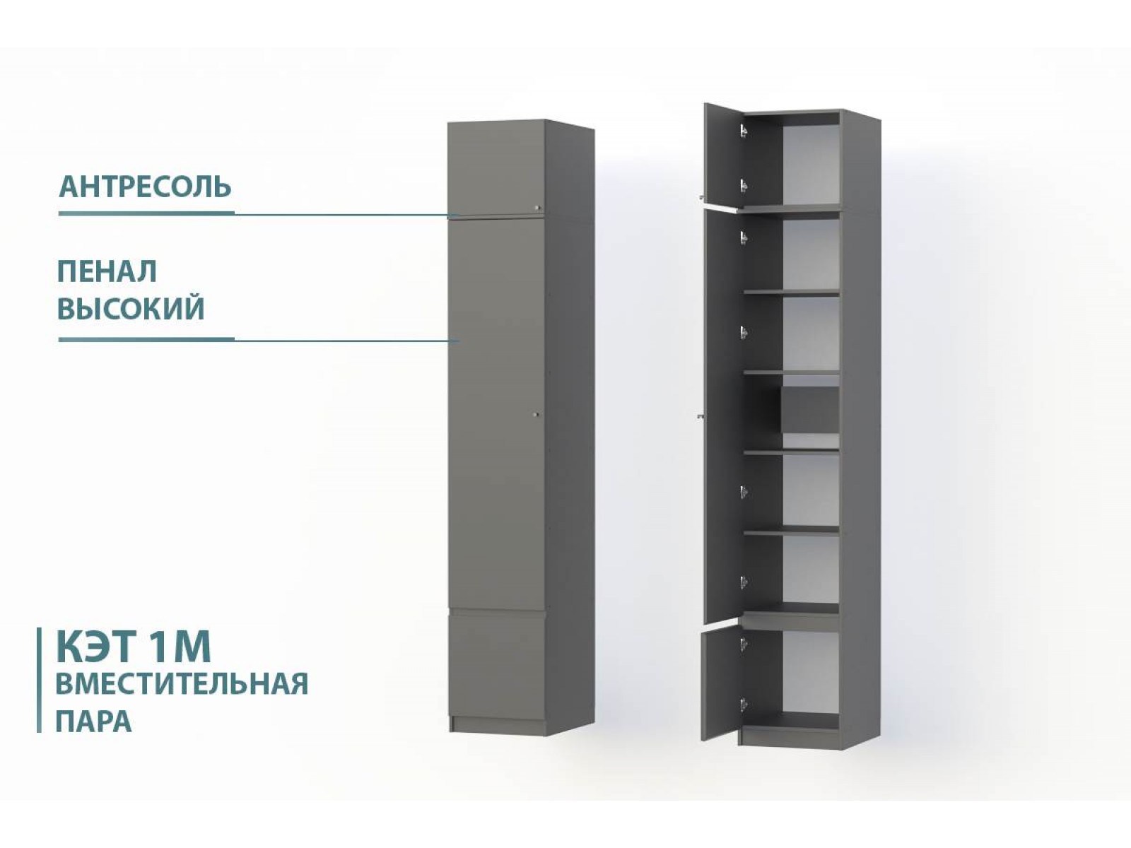 Пенал с антресолью очень функциональный, вместительный, оснащён пятью просторными полками, на которых можно разместить одежду, бельё и другие предметы обихода.