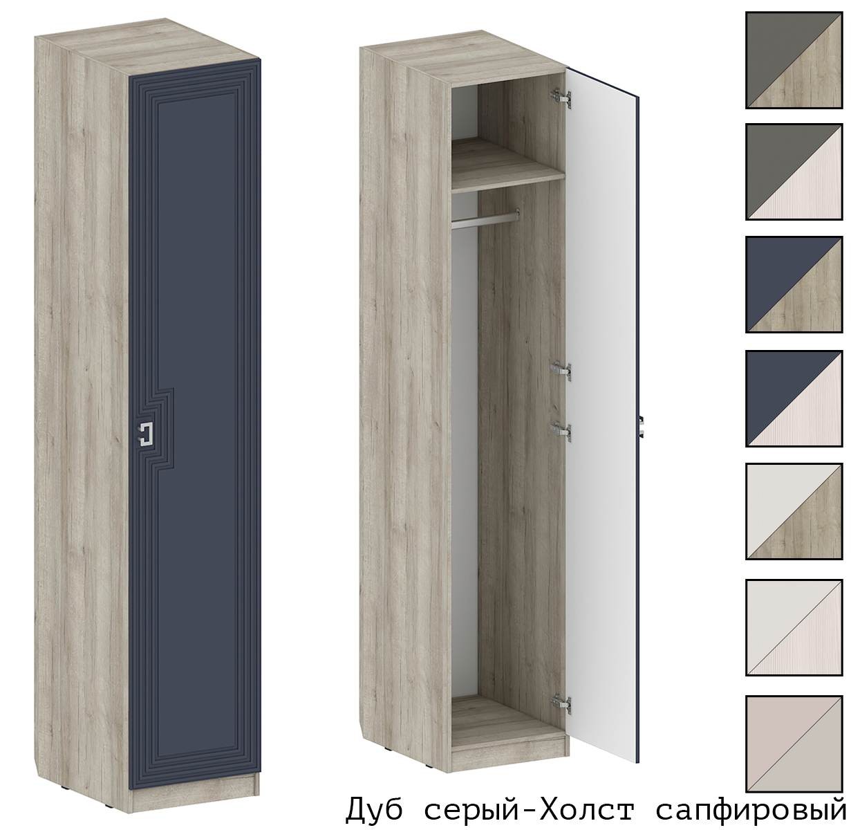 Корпус Дуб серый + Фасад Холст сапфировый