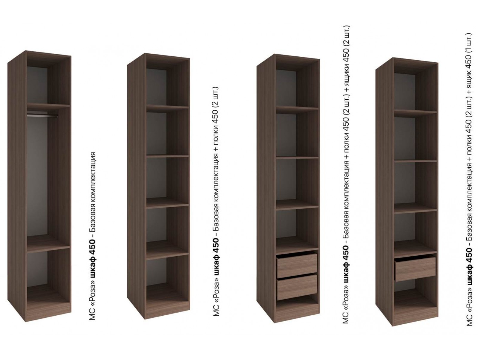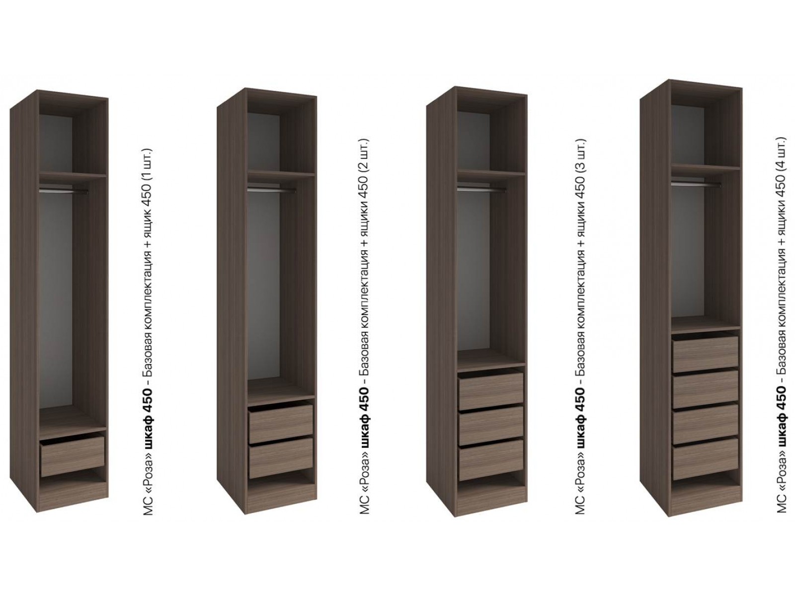 Серия шкафов Роза – это коллекция модульных шкафов, которая предлагает множество вариантов для организации хранения вещей. Система хранения создана в виде конструктора. Дополнительные ящики и полки приобретаются отдельно, они позволят создавать уникальный дизайн внутреннего наполнения.