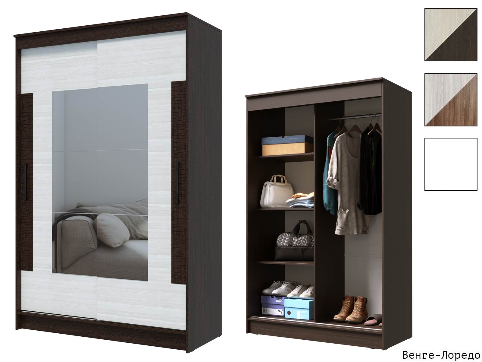 Шкаф-купе Элегант-2 сочетает всё необходимое для хранения вещей. Зеркала на фасадах позволят оценить внешний вид во весь рост и визуально расширят пространство.