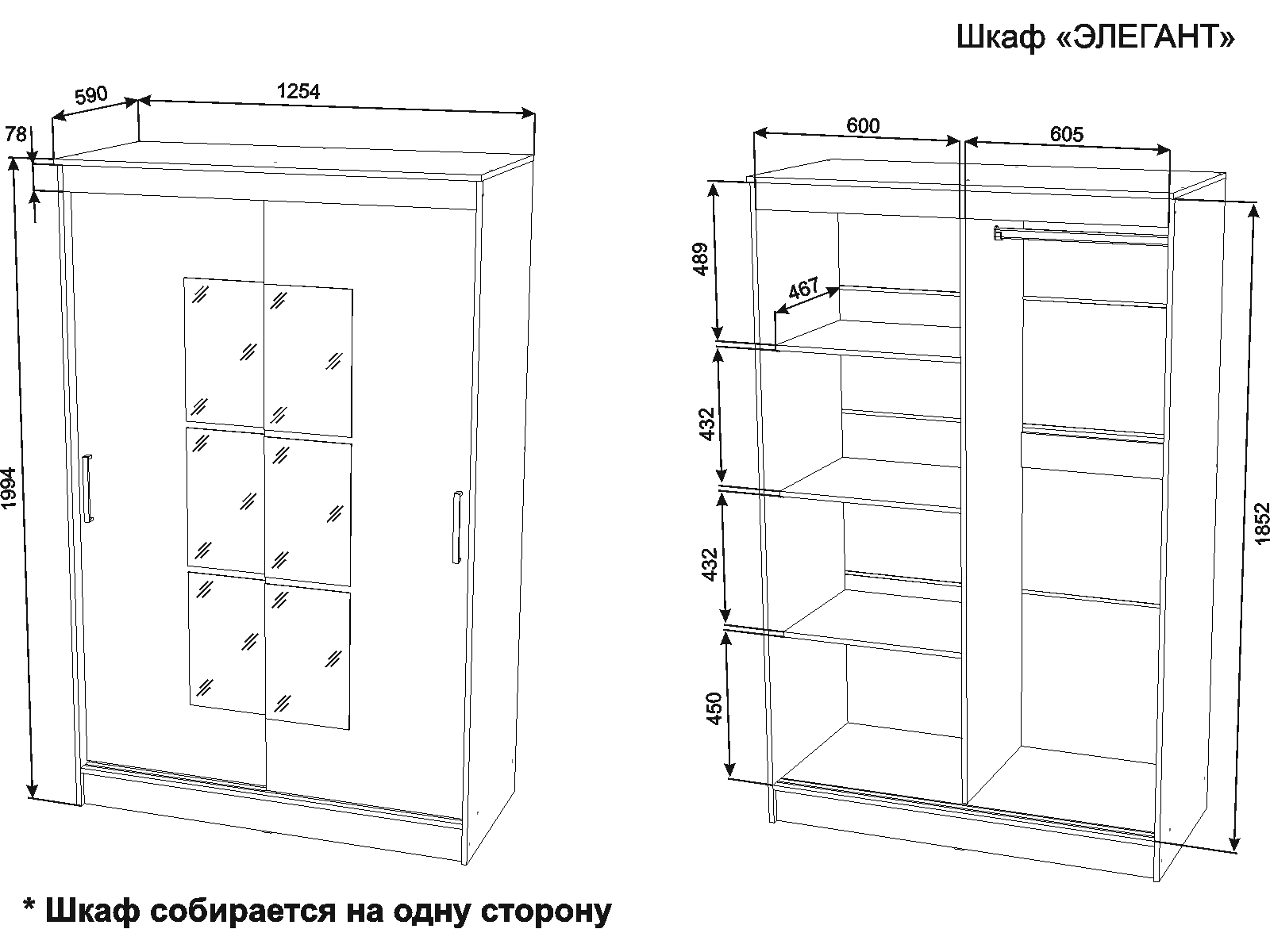 Шкаф-купе Элегант- 4 изящно дополнит ваш интерьер. Он имеет компактные размеры, что позволяет разместить его даже в ограниченном пространстве.