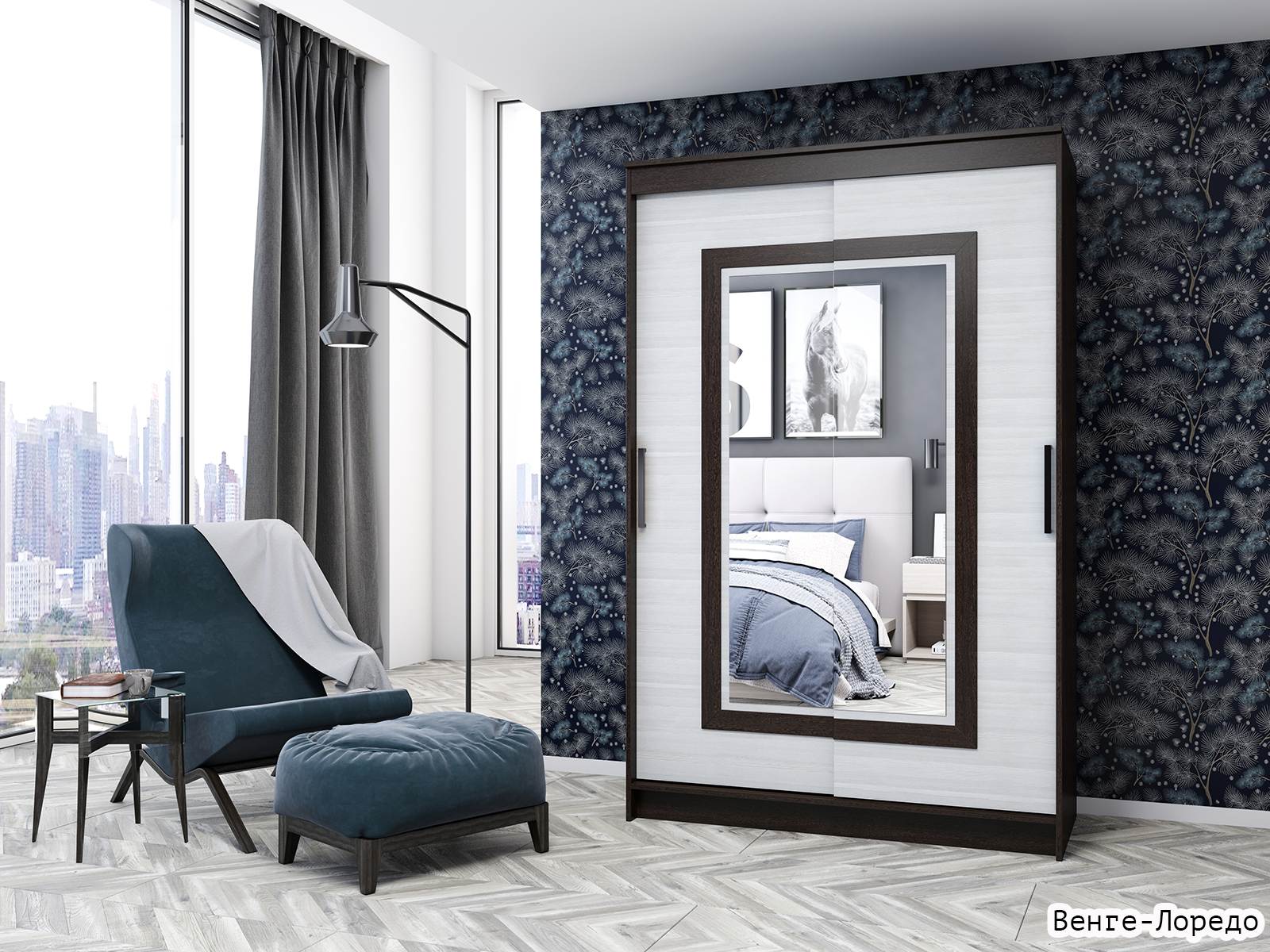 Наличие зеркал на дверях добавляет визуальный простор и позволяет удобно примерять одежду, не выходя из комнаты.