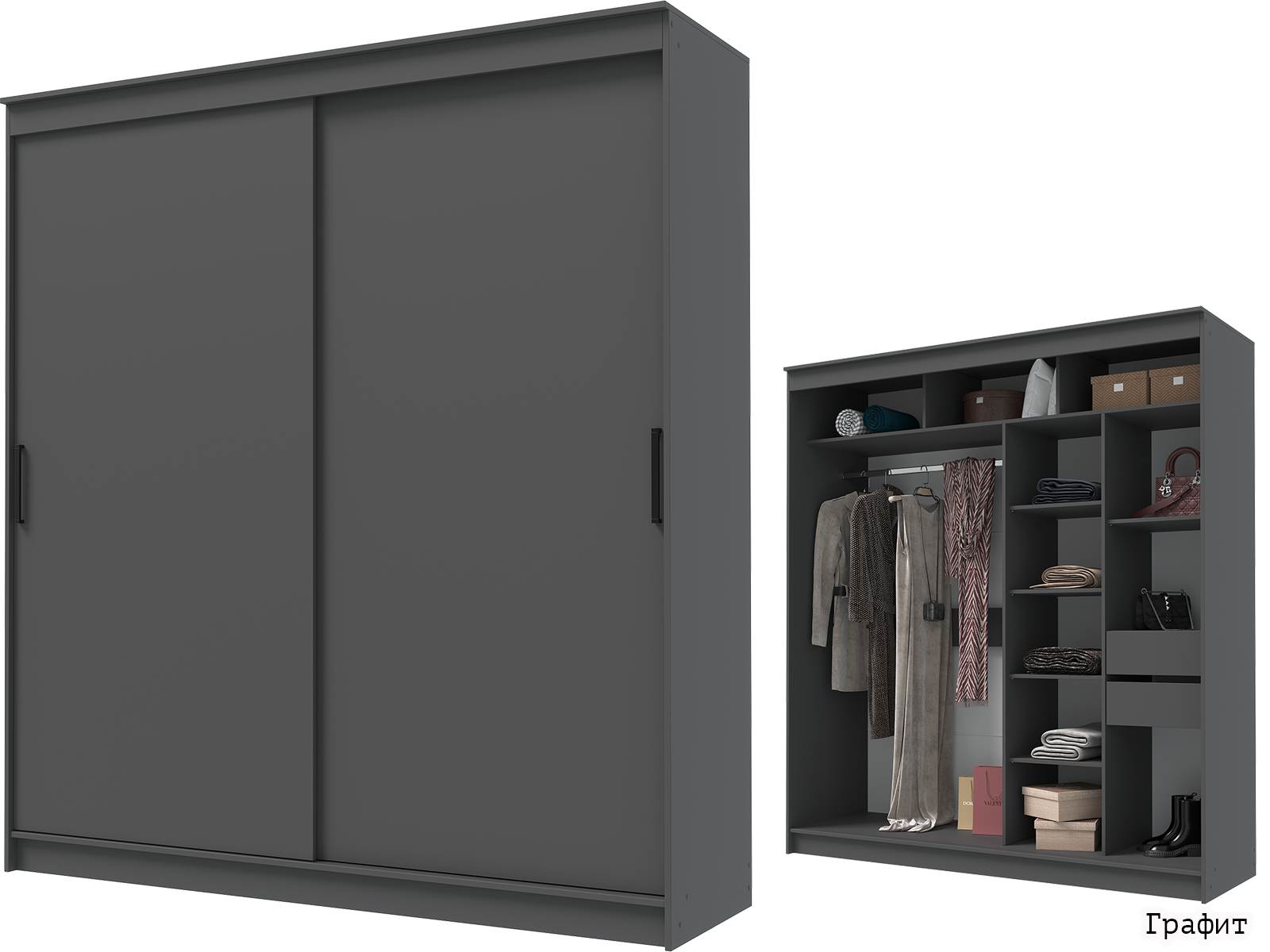 Шкаф-купе Гранд - стильная и функциональная модель с продуманным наполнением. Предусмотрена вместительная ниша со штангой и отделение с полками. Небольшие выдвижные ящики удобны для аксессуаров и различных мелочей.