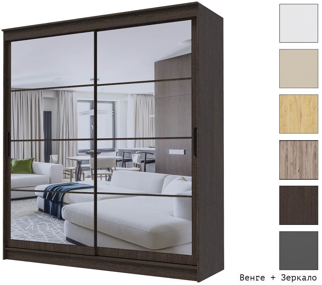 Материал корпуса: ЛДСП. Материал фасадов: Зеркало + Зеркало