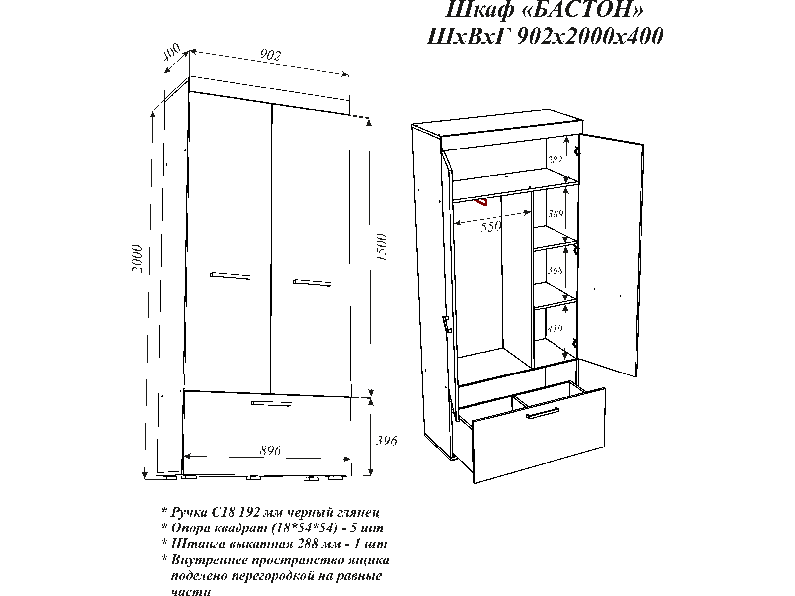 Главное преимущество этого шкафа для одежды - его размер и наличие ящика на роликовых направляющих.