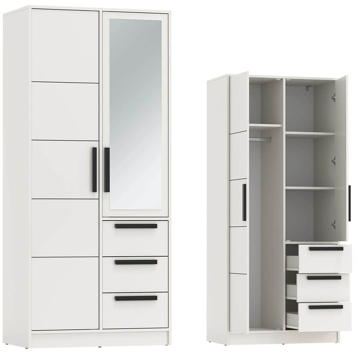 Модель имеет функциональную конструкцию с двумя дверцами (короткая дверь с зеркалом).