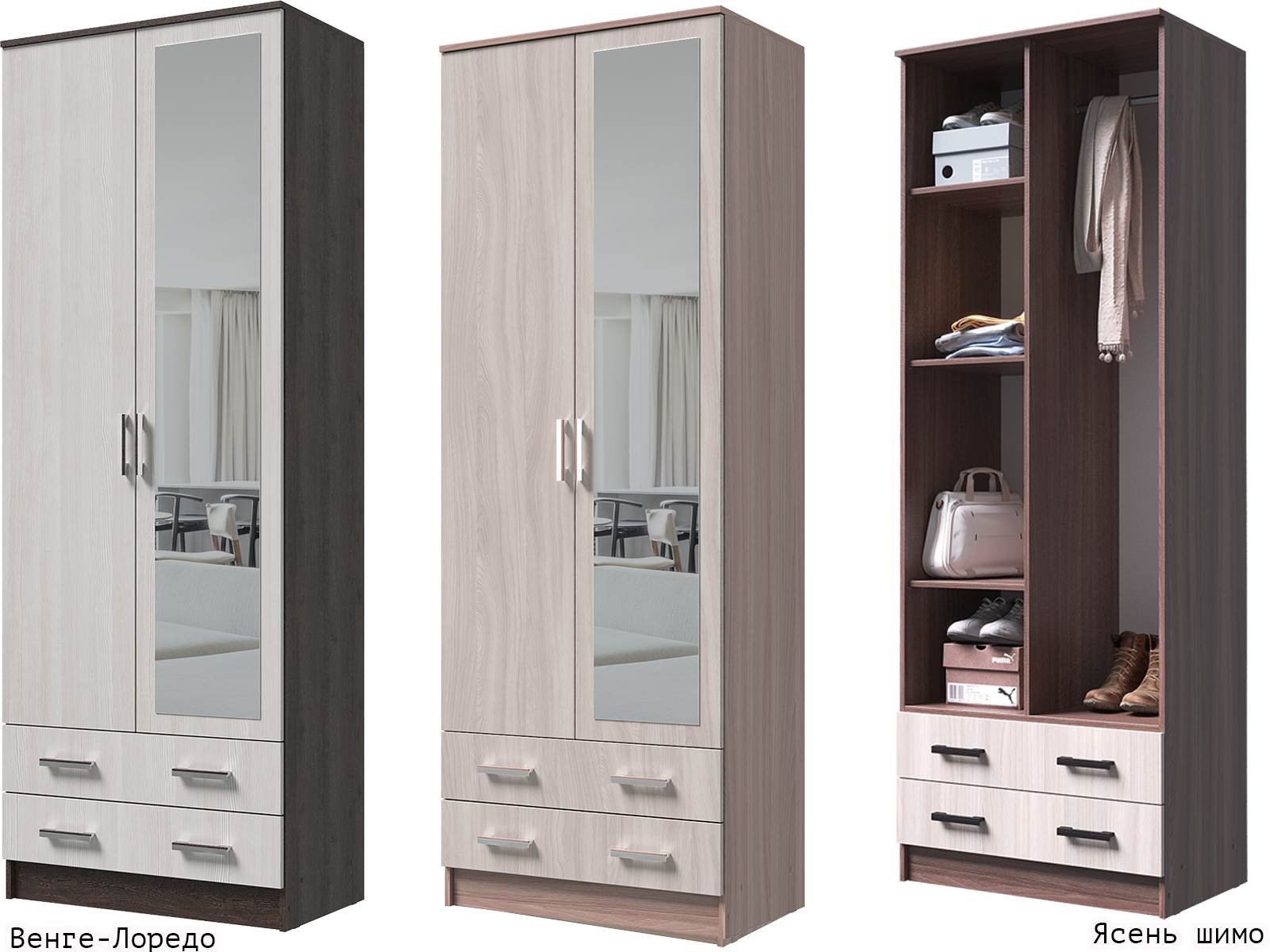 Дуэт шкаф комбинированный двухстворчатый с Зеркалом. Компактный шкаф для гостиной, личной комнаты или спальни.