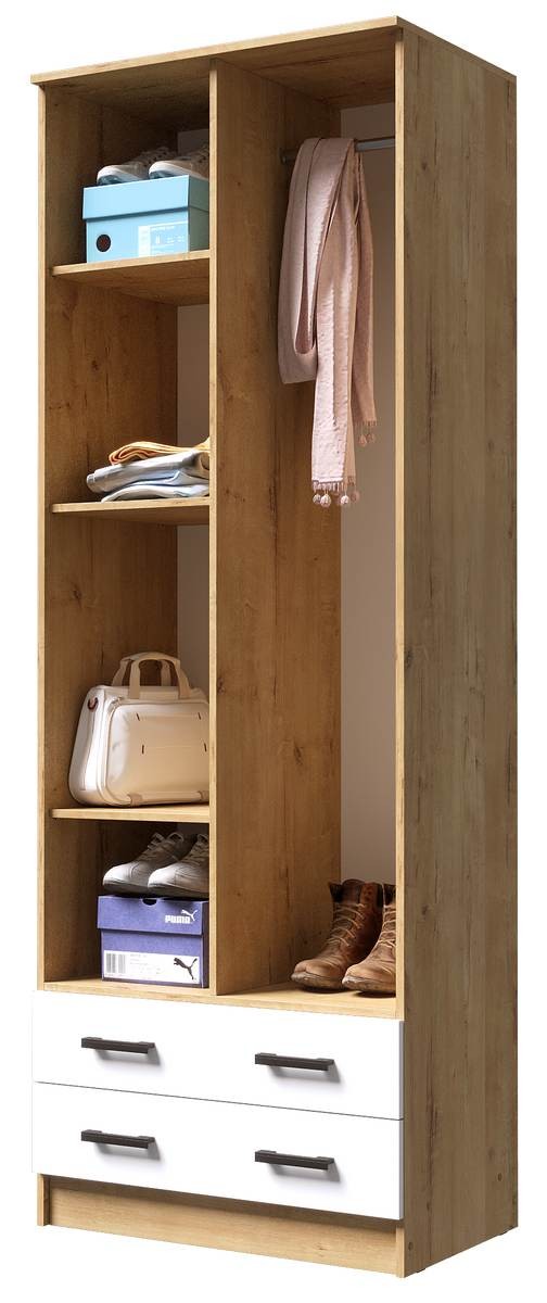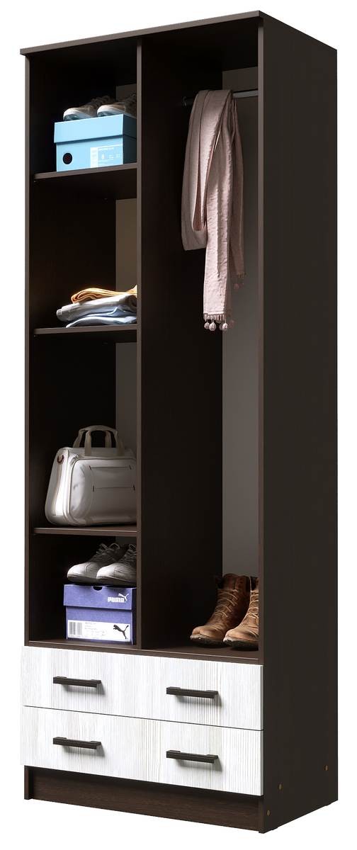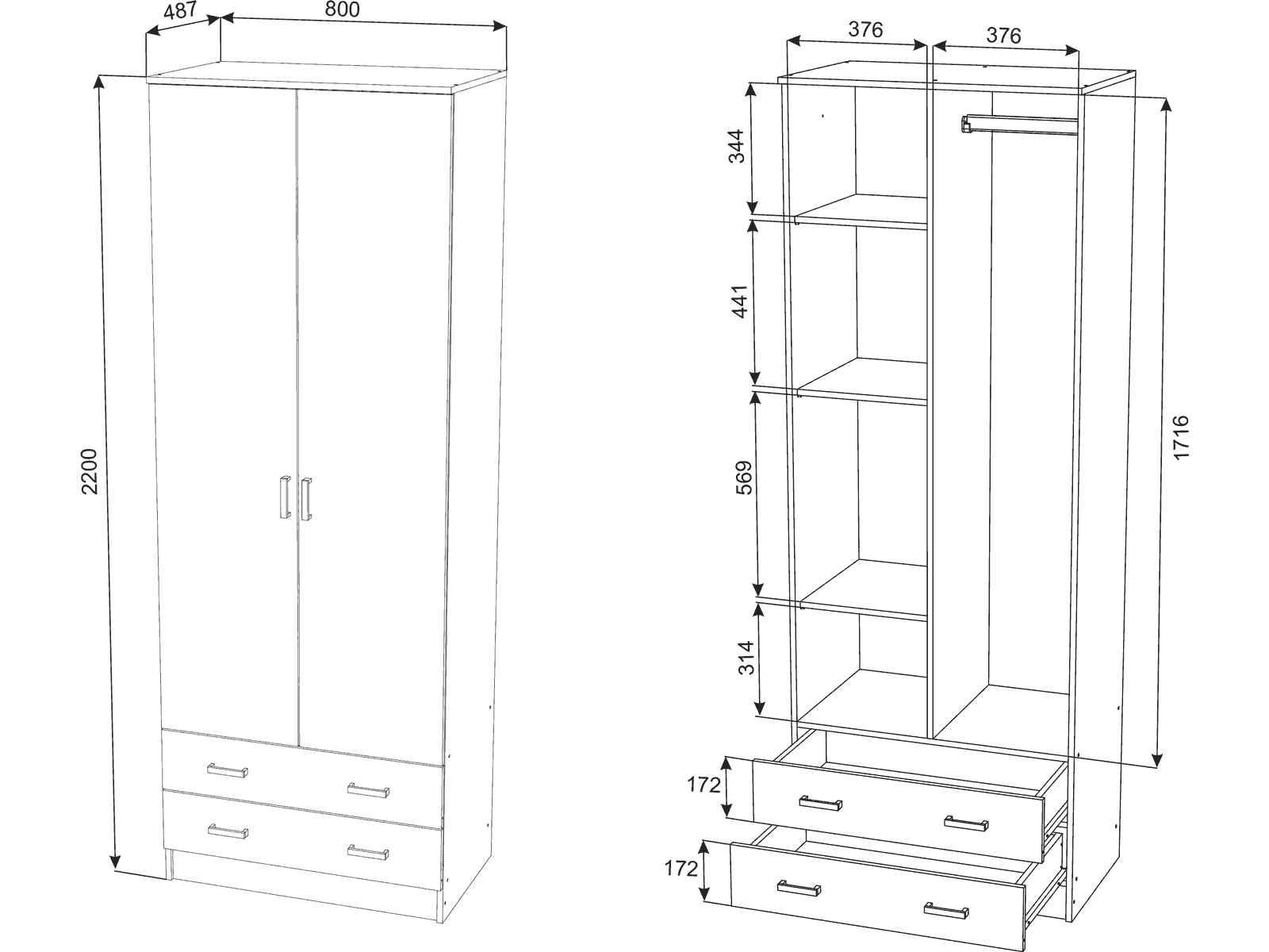 Двухстворчатый шкаф - идеальное решение для вашего дома. Надёжная штанга и полки – для хранения одежды.