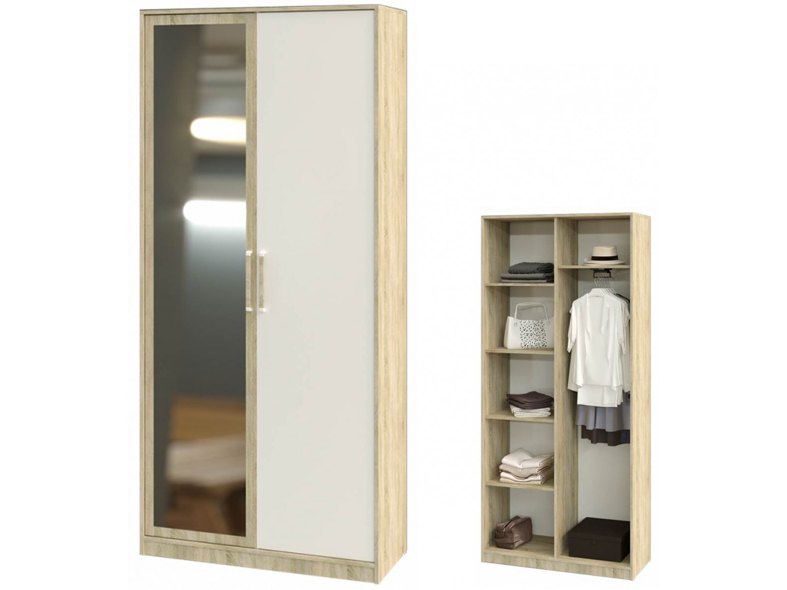 Корпус ЛДСП Дуб сонома, Фасад ЛДСП Белый жемчуг. + Зеркало