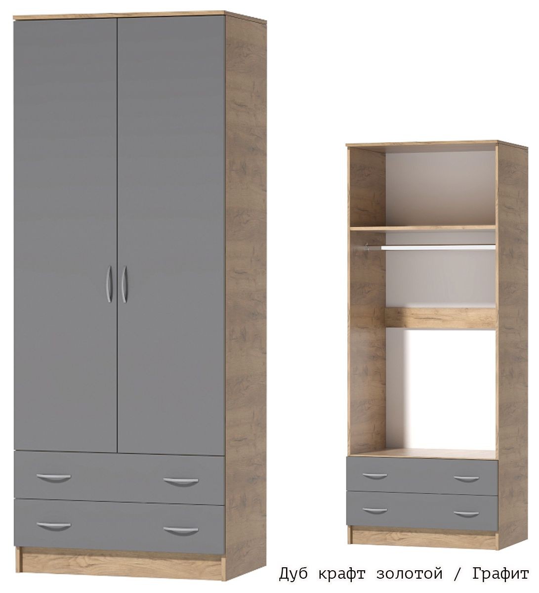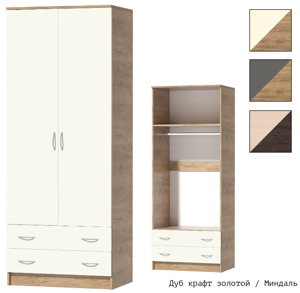 Функциональный, практичный двухдверный шкаф отлично впишется в интерьер любой спальни. Он вместит в себя достаточное количество вещей благодаря наличию антресольной полки, металлической штанги и двух выдвижных ящиков.