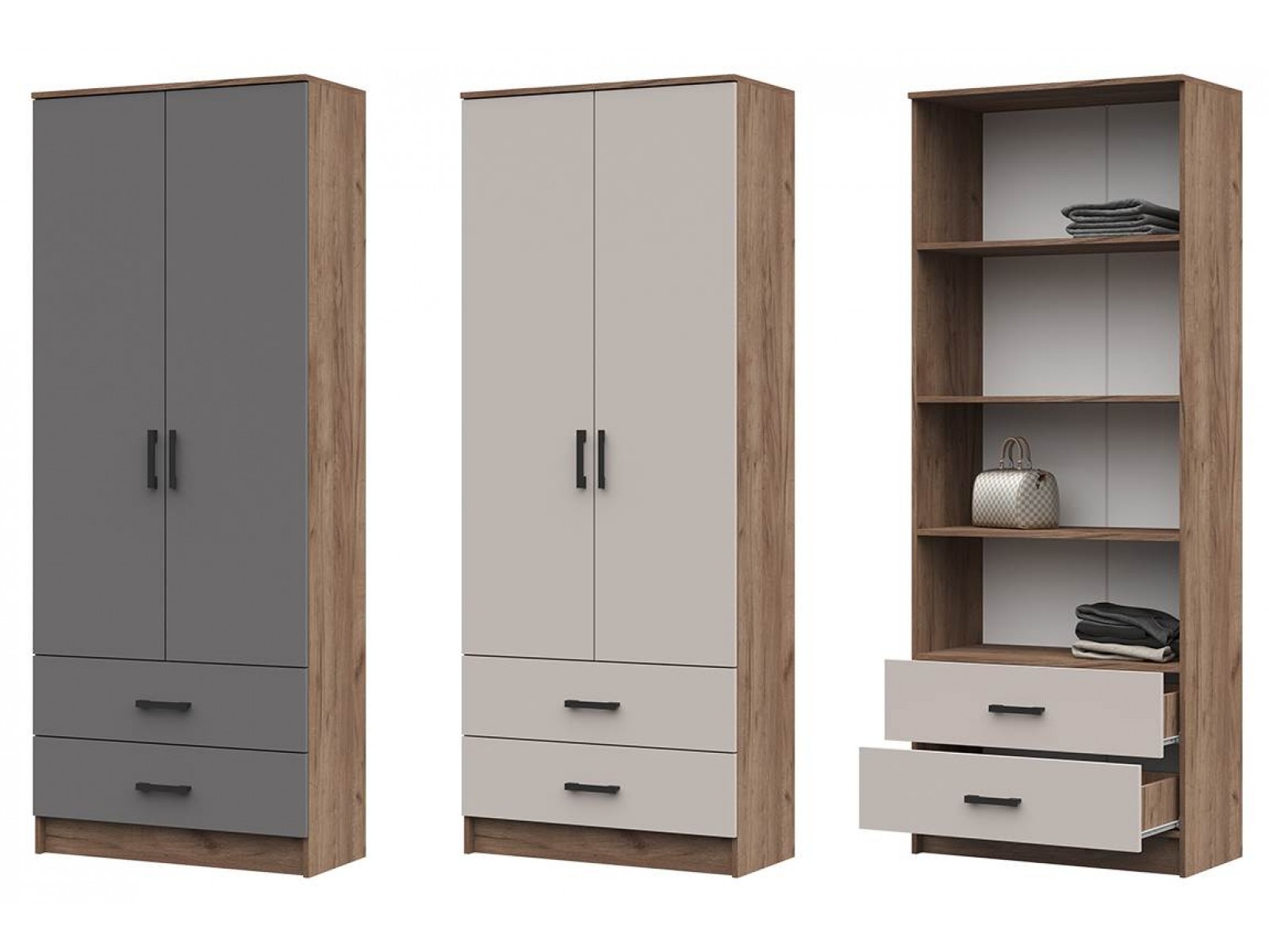 Вместительный двухстворчатый шкаф для одежды. Благодаря светлому цвету фасадов, шкаф впишется в любой интерьер. Шкаф мы можем разместить как в прихожей, так и в спальне. Ящики: Роликовые направляющие.