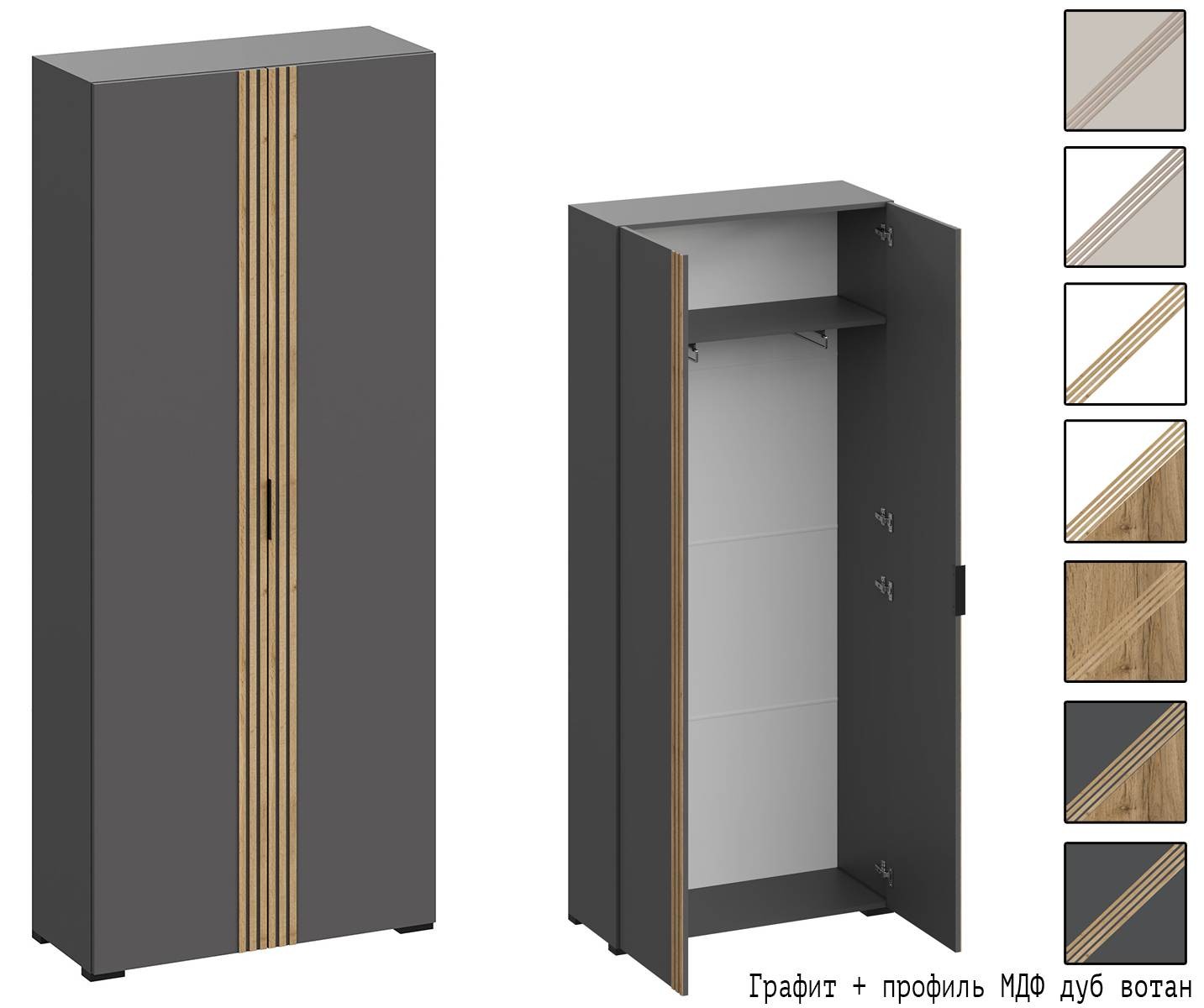 Вариант 2 Корпус ЛДСП Графит + фасад ЛДСП Графит/ профиль МДФ Дуб Вотан