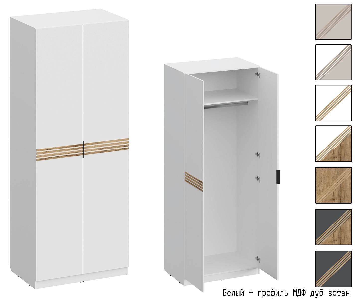 Вариант 3 Корпус ЛДСП Дуб Вотан + фасад ЛДСП Белый/ профиль МДФ Дуб Вотан