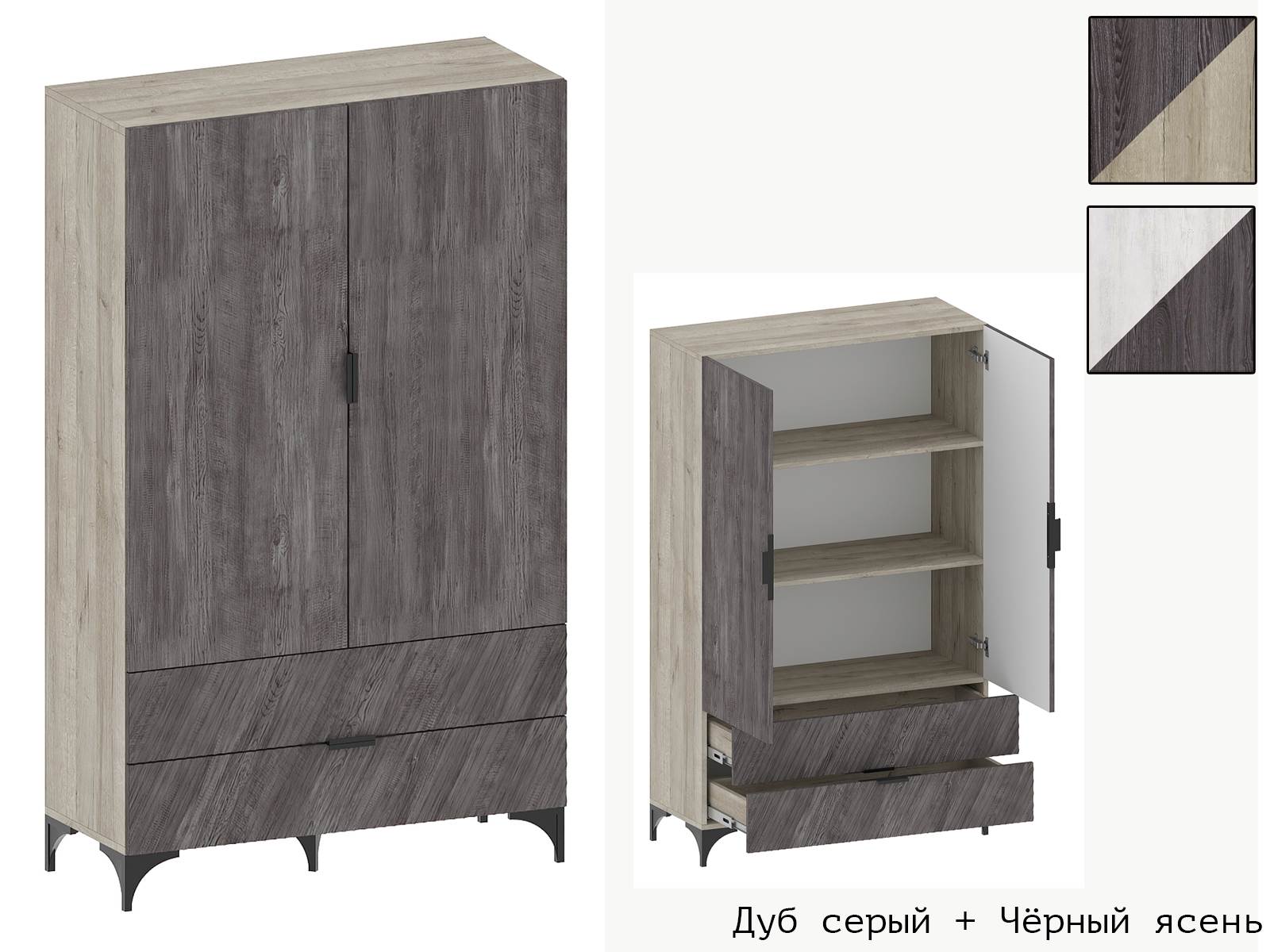 -Корпус Дуб серый + Фасад Чёрный ясень,