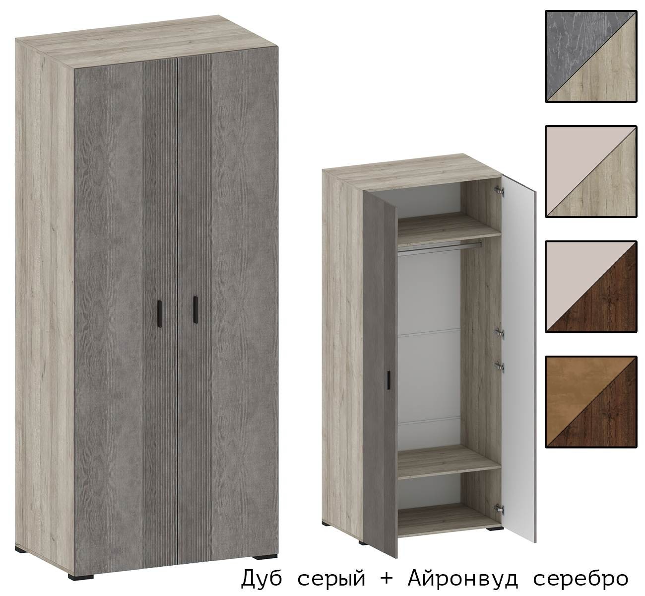 Корпус Дуб серый + Фасад Айронвуд серебро