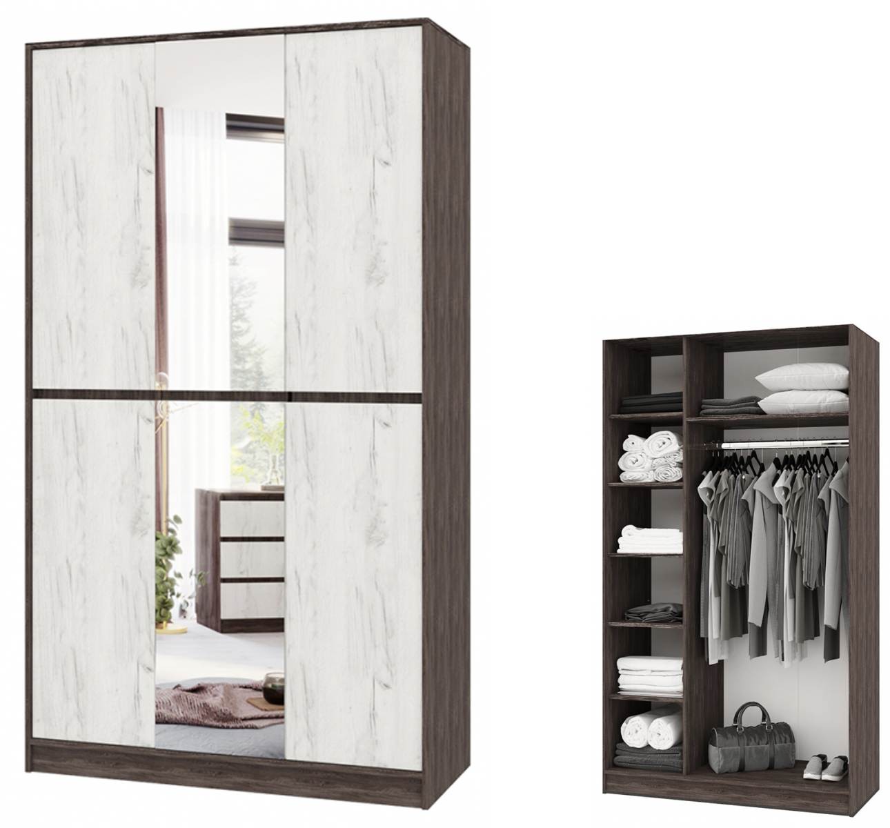 Внутри шкафа есть полки для белья и продольная штанга для одежды.