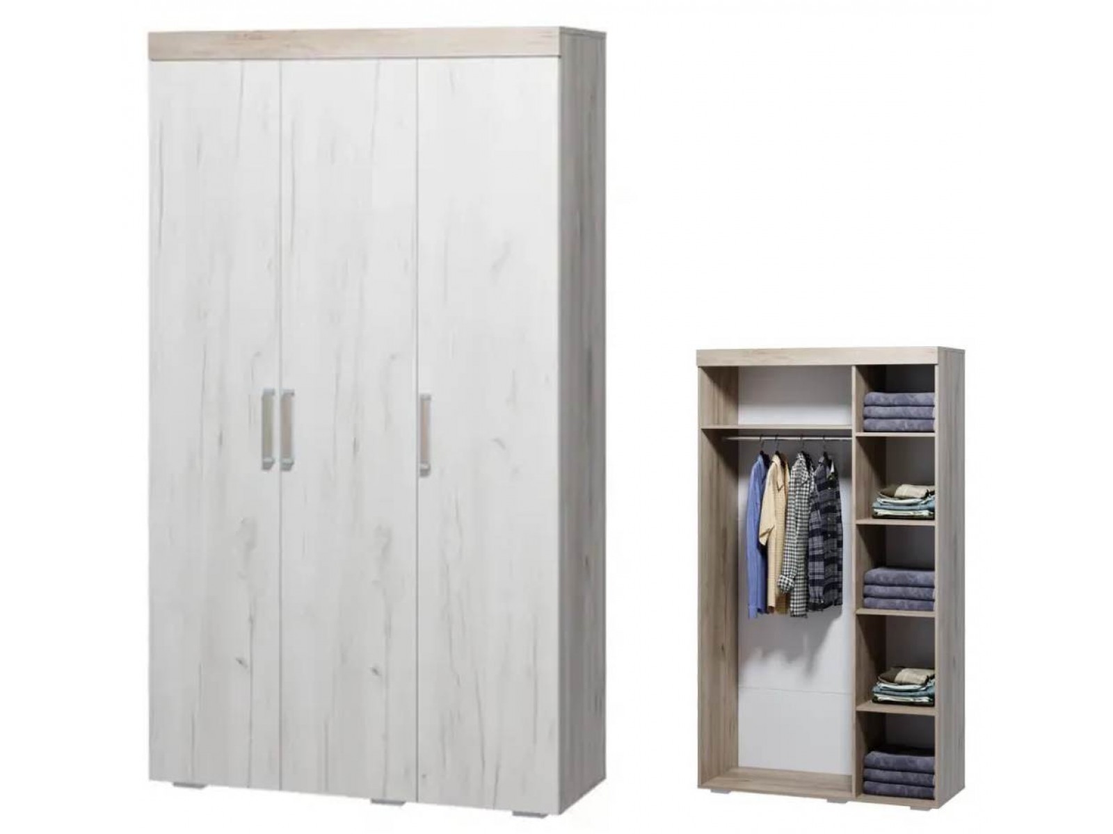 Внутренняя комплектация состоит из отделения с хромированной штангой и зоны с полками для хранения трикотажа или белья.