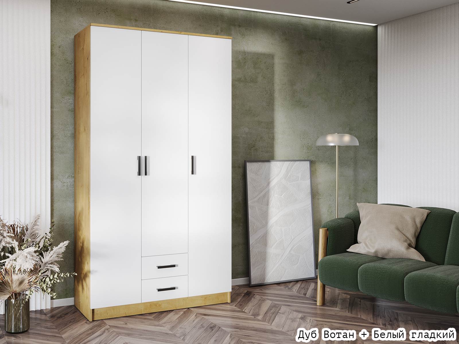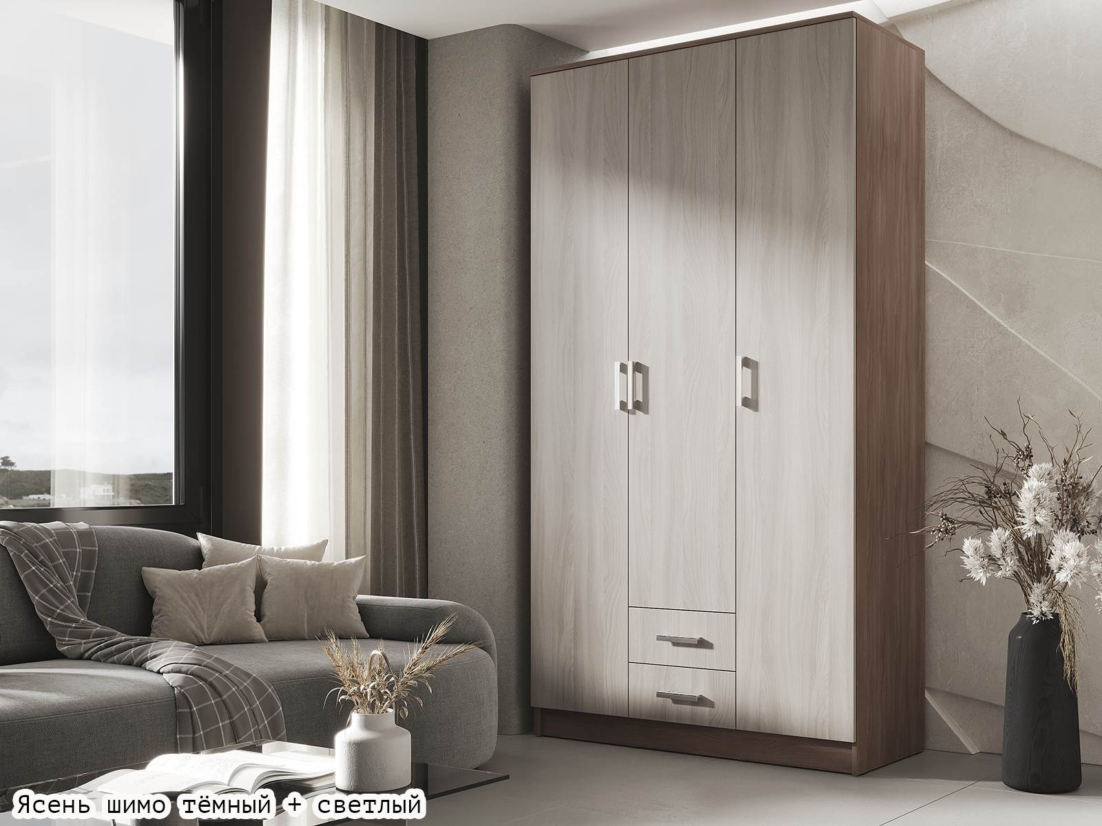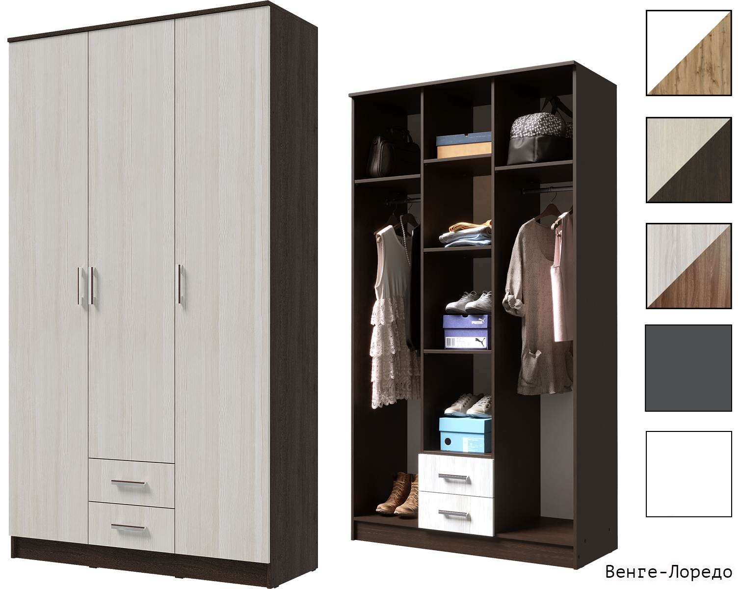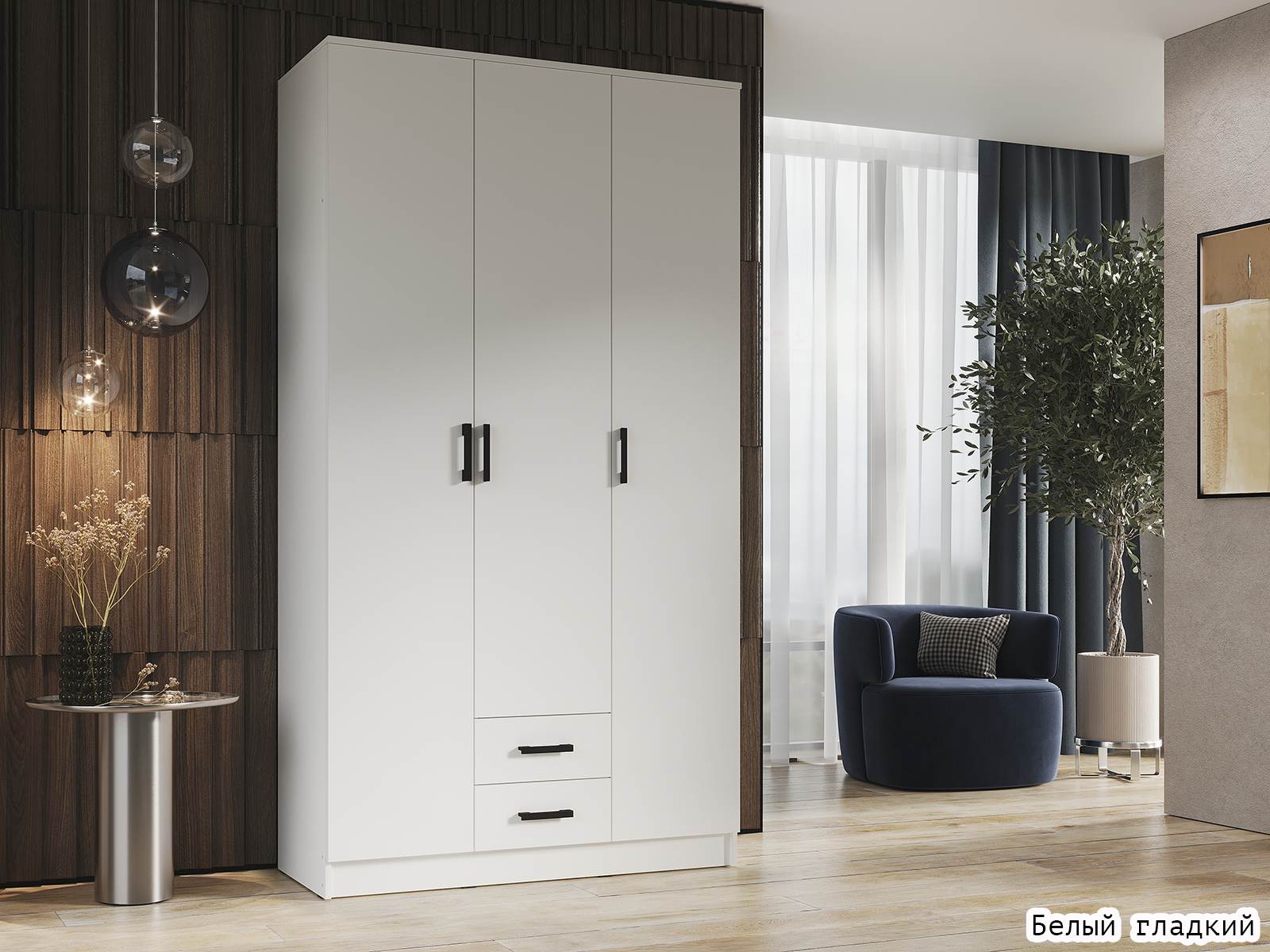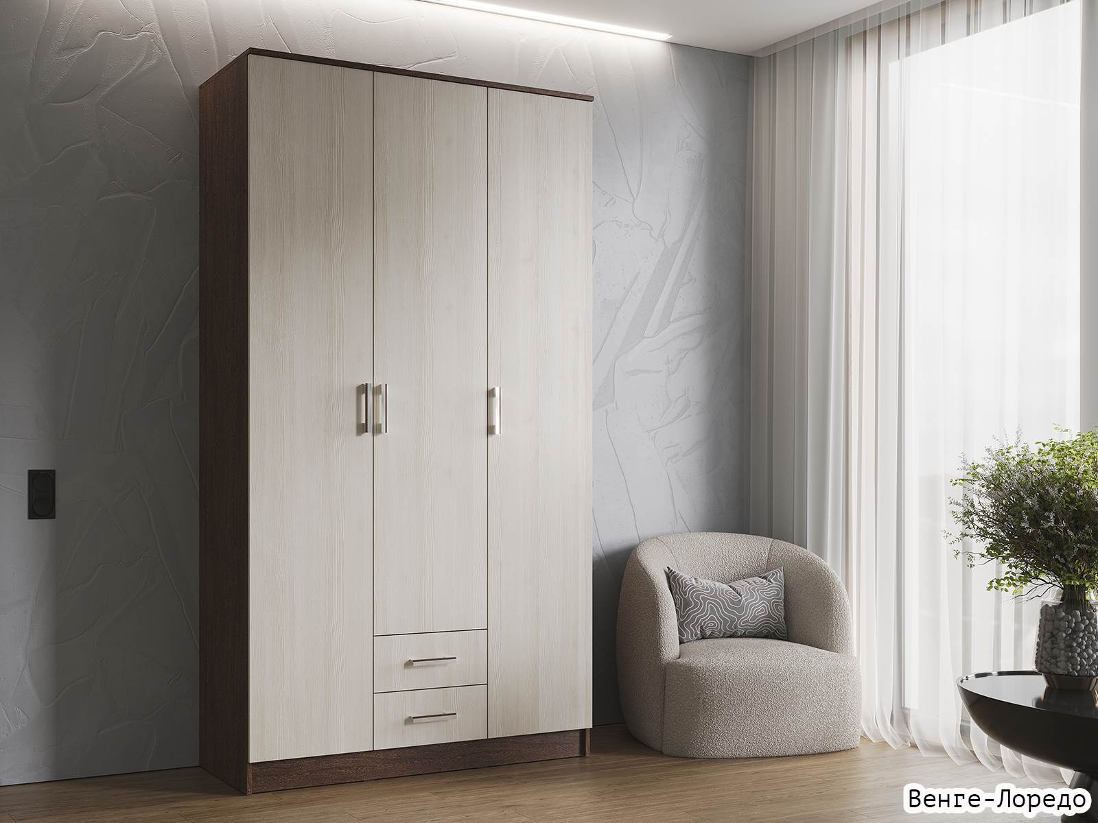 Распашной шкаф Трио Без зеркал обеспечивает продуманное хранение вещей. Внутреннее наполнение представлено двумя секциями со штангами и нишами. Центральное отделение с полками. В небольших выдвижных ящиках удобно хранить полезные мелочи. Шкаф Трио имеет роскошный внешний вид, благодаря чему становится важным элементом стиля в вашей спальне или гостиной.