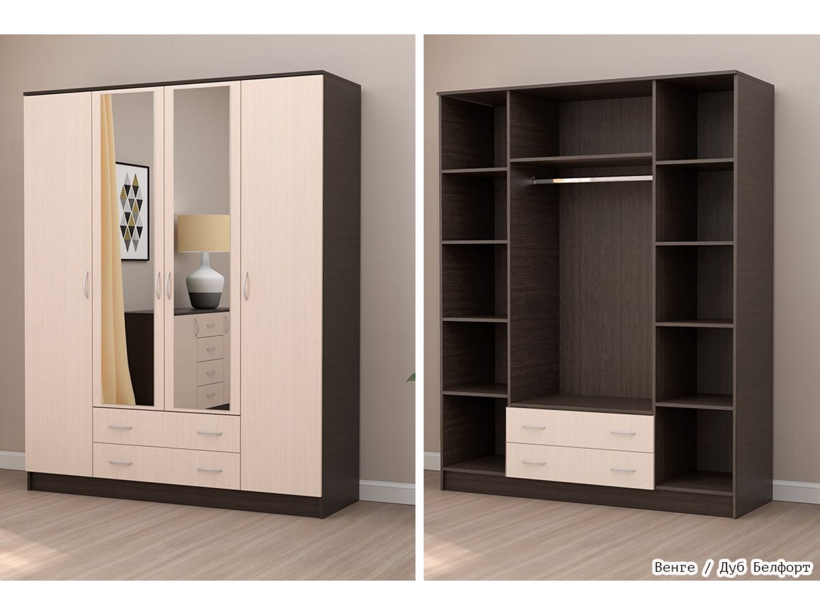 Функциональный, удобный, вместительный четырёхстворчатый шкаф способен прекрасно дополнить и даже украсить собой любой интерьер.