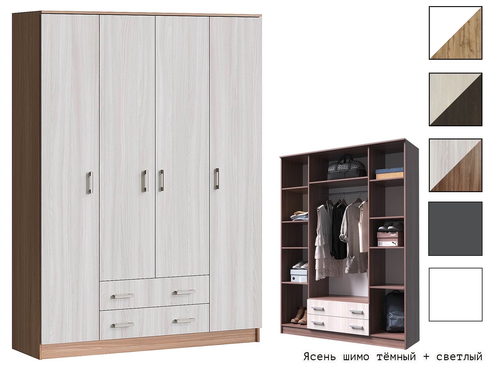 Шкаф для одежды Квадро - идеальный выбор для тех, кто ищет стильное и функциональное решение для организации пространства в доме. Он станет отличным дополнением в прихожую, спальню или гостиную. Вместительные полки и горизонтальная штанга, позволят разместить вещи аккуратно и удобно.