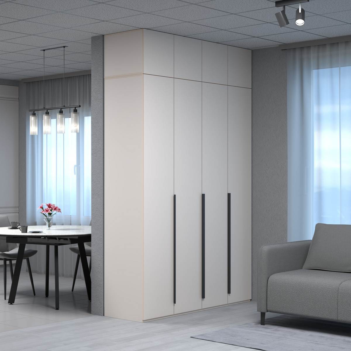Максимально используйте свое решение для хранения и создайте гармоничный вид, создав собственную комбинацию шкафа (высота 2200 мм) и антресоли (высота 400 мм) из модульной системы Пальма. Это позволяет увеличить высоту до 2600 мм.