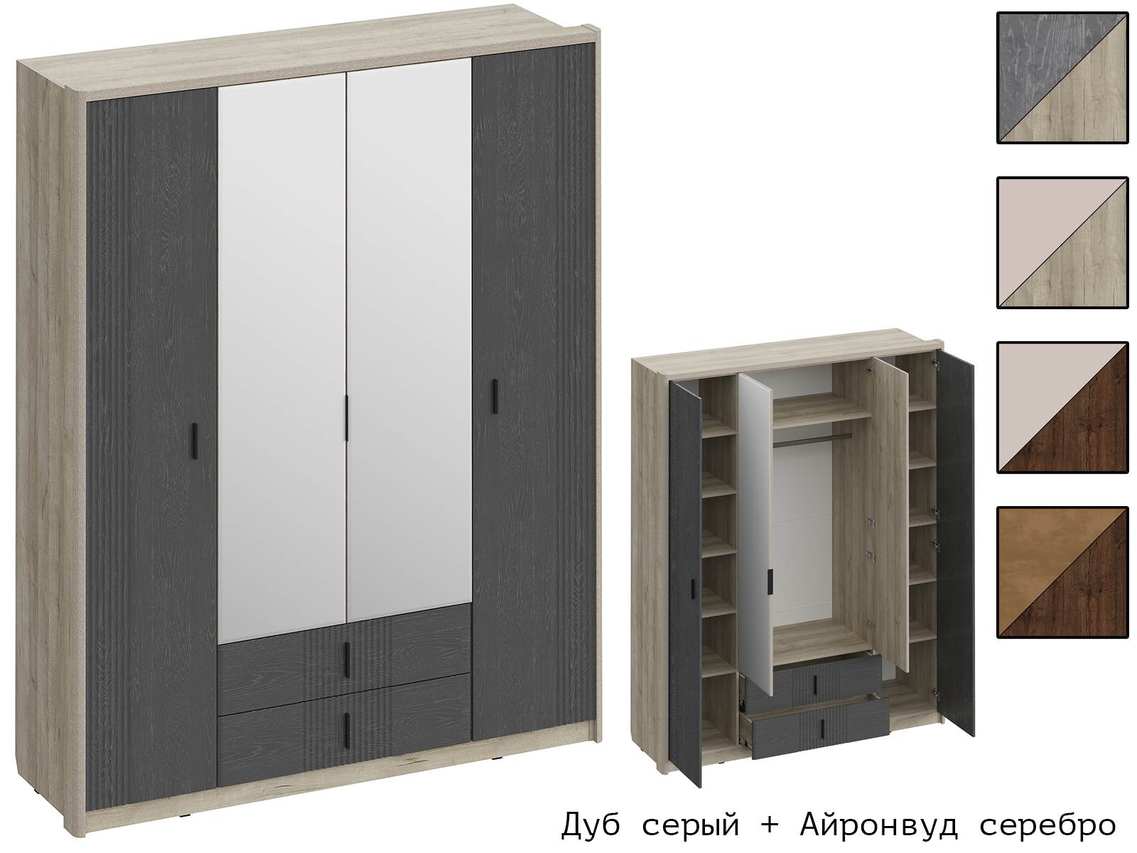 Корпус Дуб серый + Фасад Айронвуд серебро