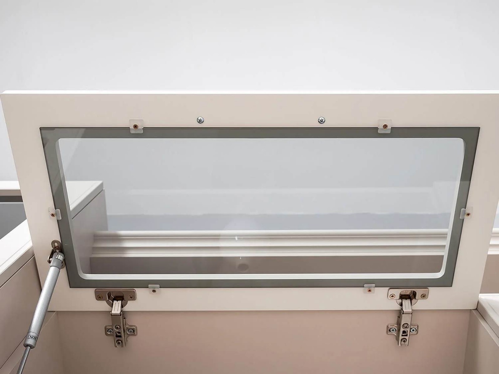 Конструкция с двумя отделениями и дверками со стеклянными вставками.