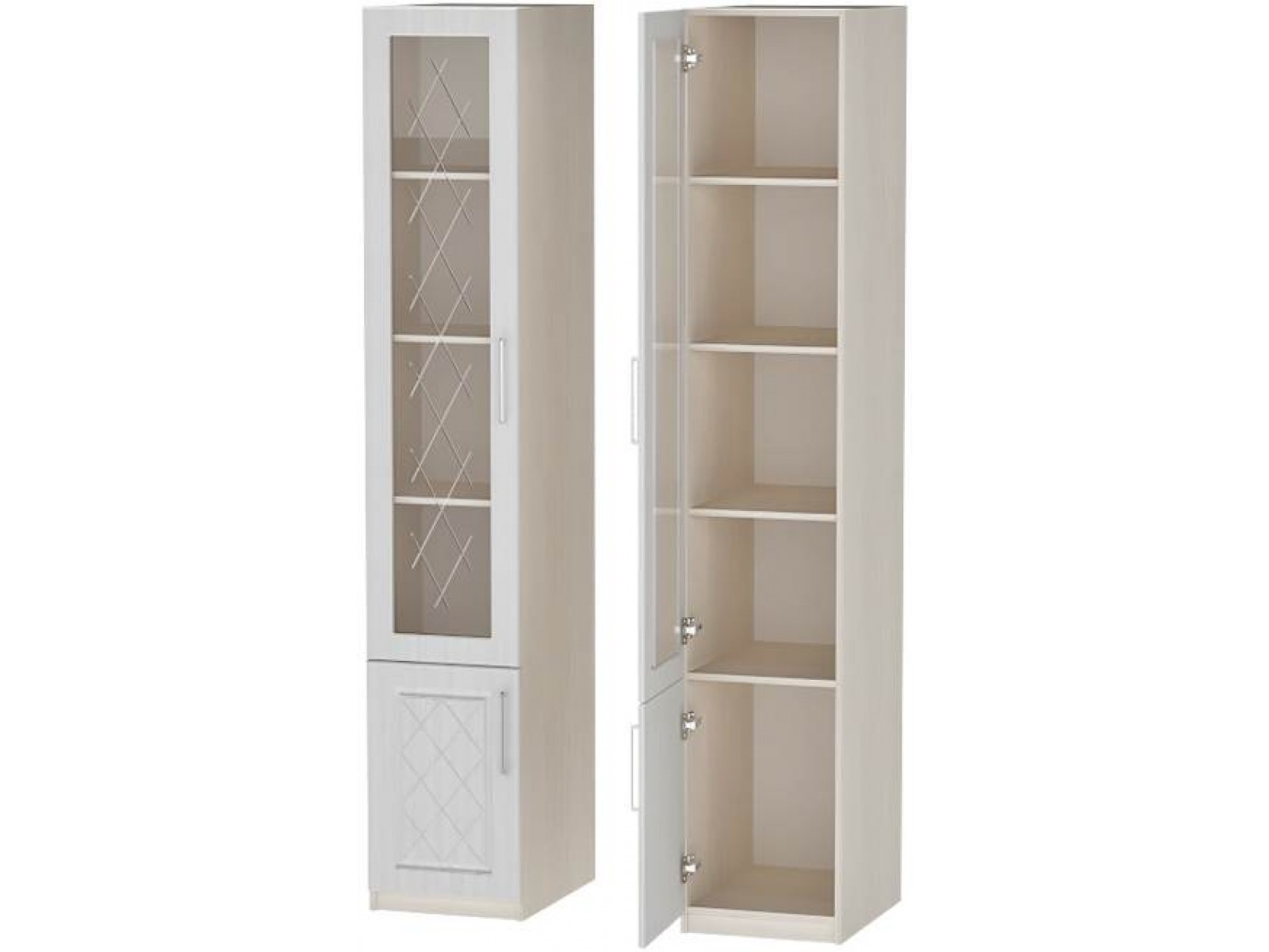 Пенал с закрытой нишей - компактный, практичный и функциональный предмет мебели, использование которого позволяет сэкономить место в комнате и при этом поместить немалое количество вещей. Конструкция с глухой и стеклянной дверцей. Внутри полки для хранения.